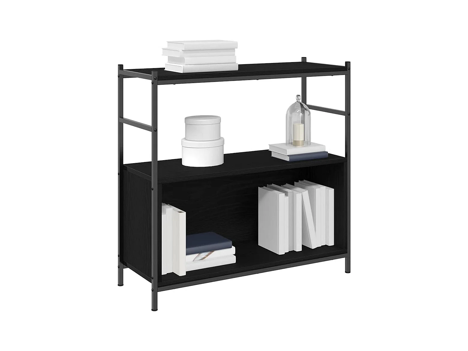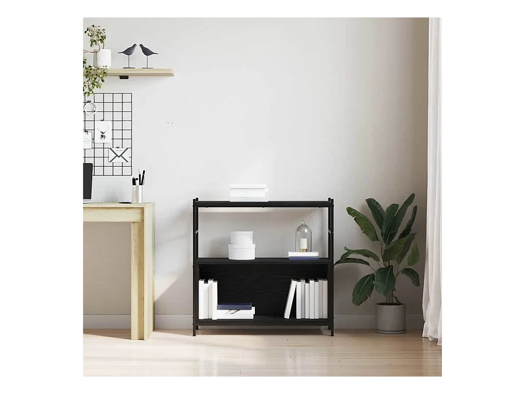 Bibliothèque noir 80x30x78,5 cm bois d'ingénierie et fer