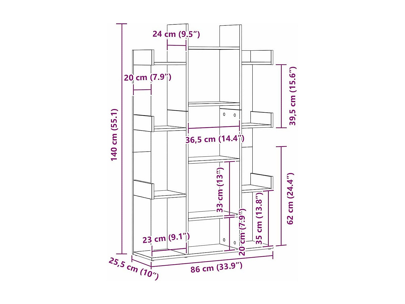 Bibliothèque Chêne noir 86 x 25.5 x 140 cm Bois d'ingénierie