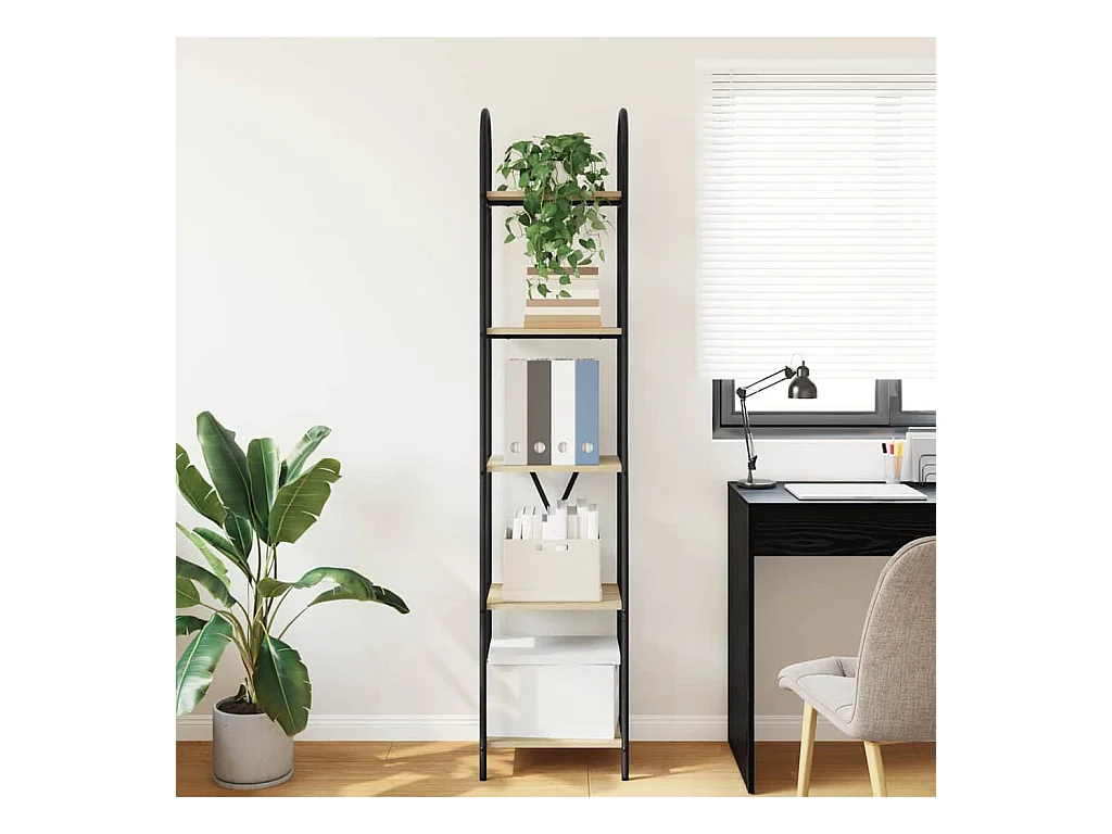 Bibliothèque 4 niveaux chêne fumé 40x30x120cm bois d'ingénierie