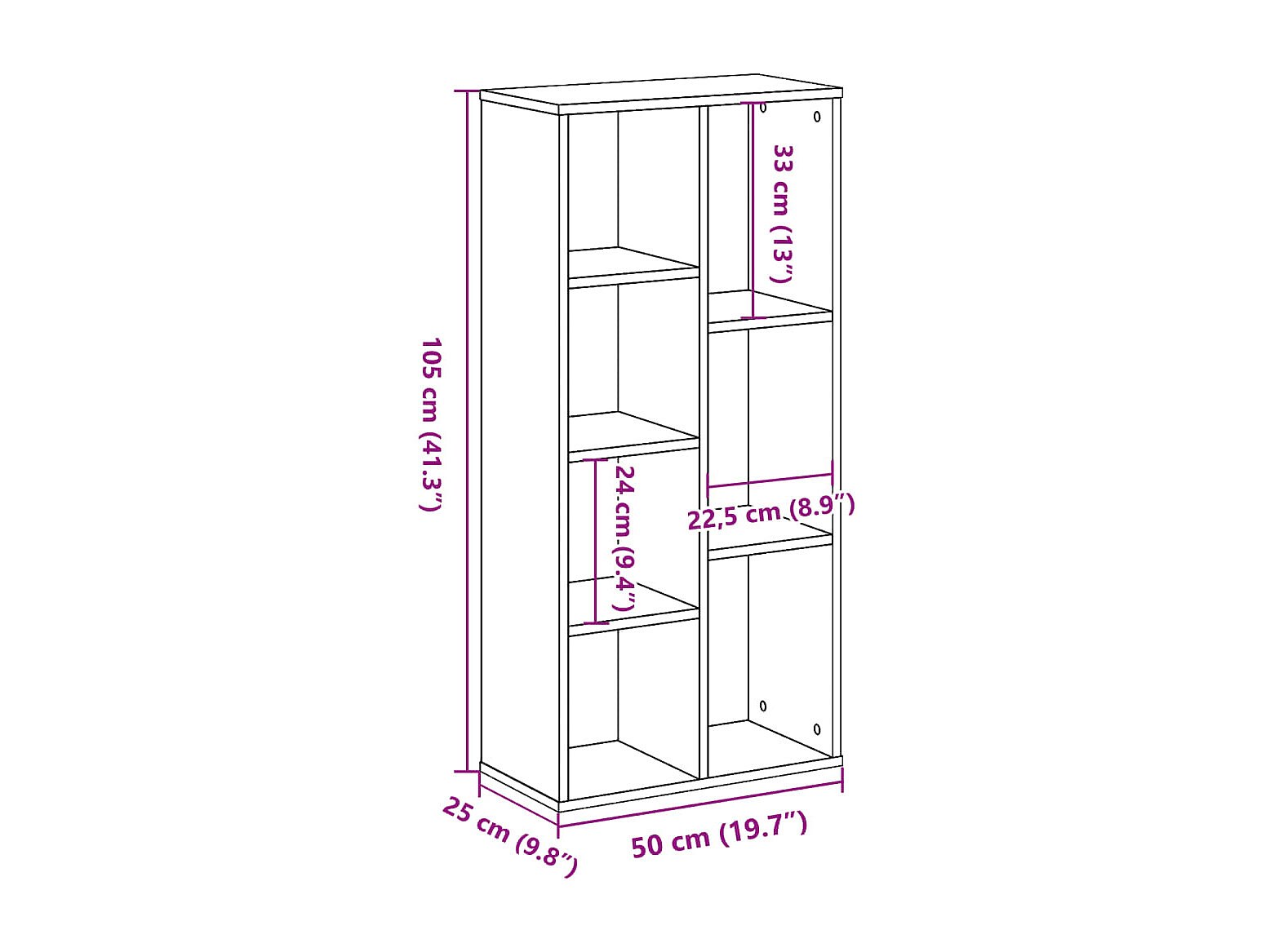Bibliothèque vieux bois 50x25x104 cm