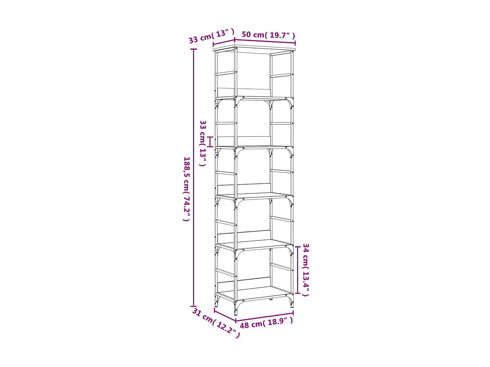 Bibliothèque chêne sonoma 50x33x188,5 cm bois d'ingénierie