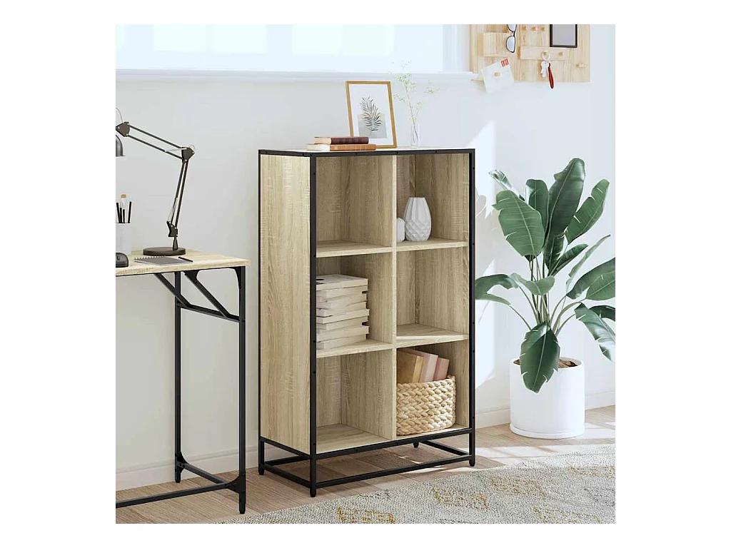 Bibliothèque chêne sonoma 97,5x33x107,5cm bois ingénierie métal