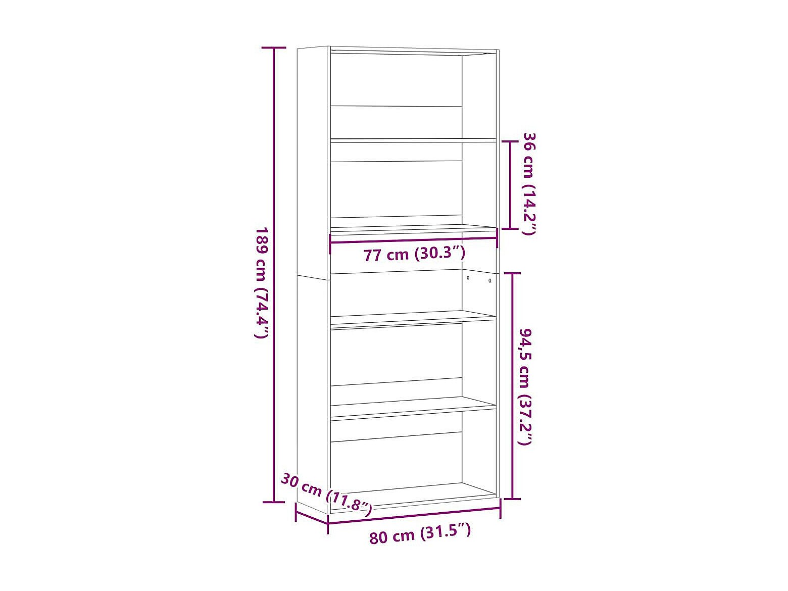 Bibliothèque chêne fumé 80x30x189 cm bois d'ingénierie
