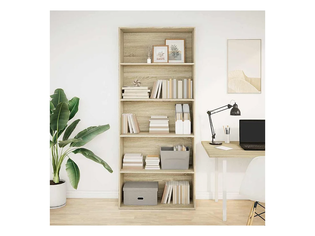 Bibliothèque à 5 niveaux chêne sonoma 80x30x154 cm