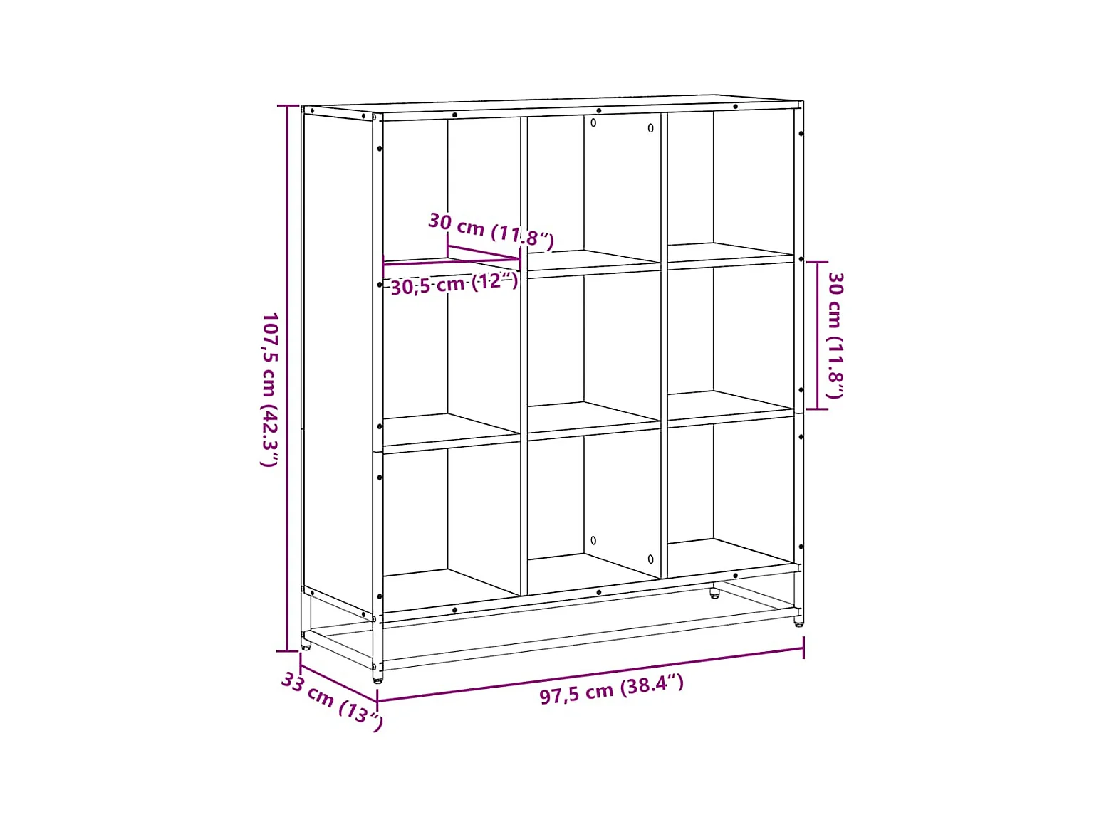 Bibliothèque chêne fumé 97,5x33x107,5cm bois d'ingénierie métal