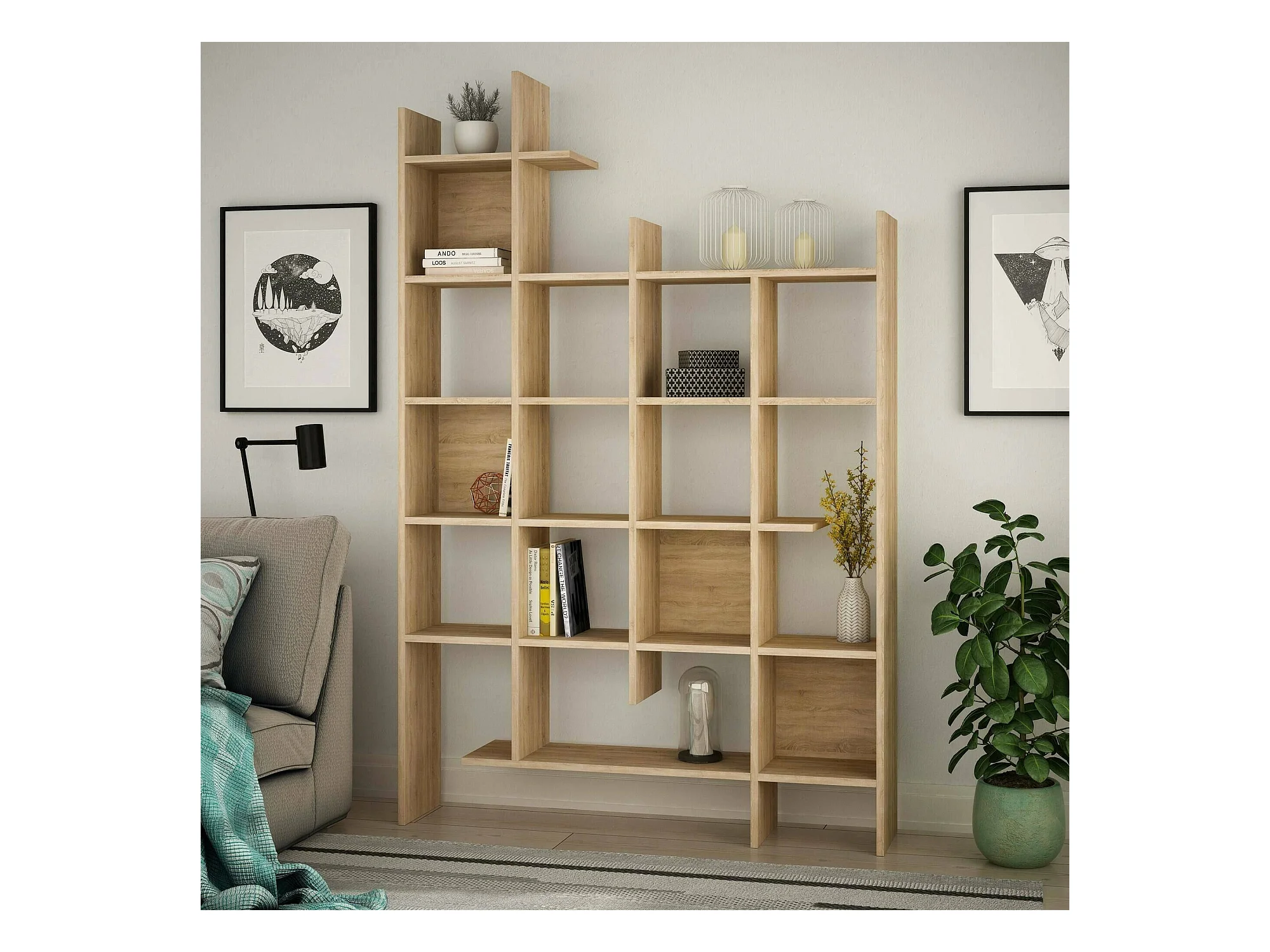 Bibliothèque Djorone, Etagère de bureau polyvalente, Bibliothèque avec 5 étagères, 80x25h190 cm, Chêne