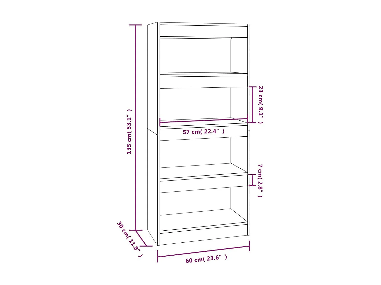 Bibliothèque/Cloison Gris béton 60x30x135 cm Bois d'ingénierie