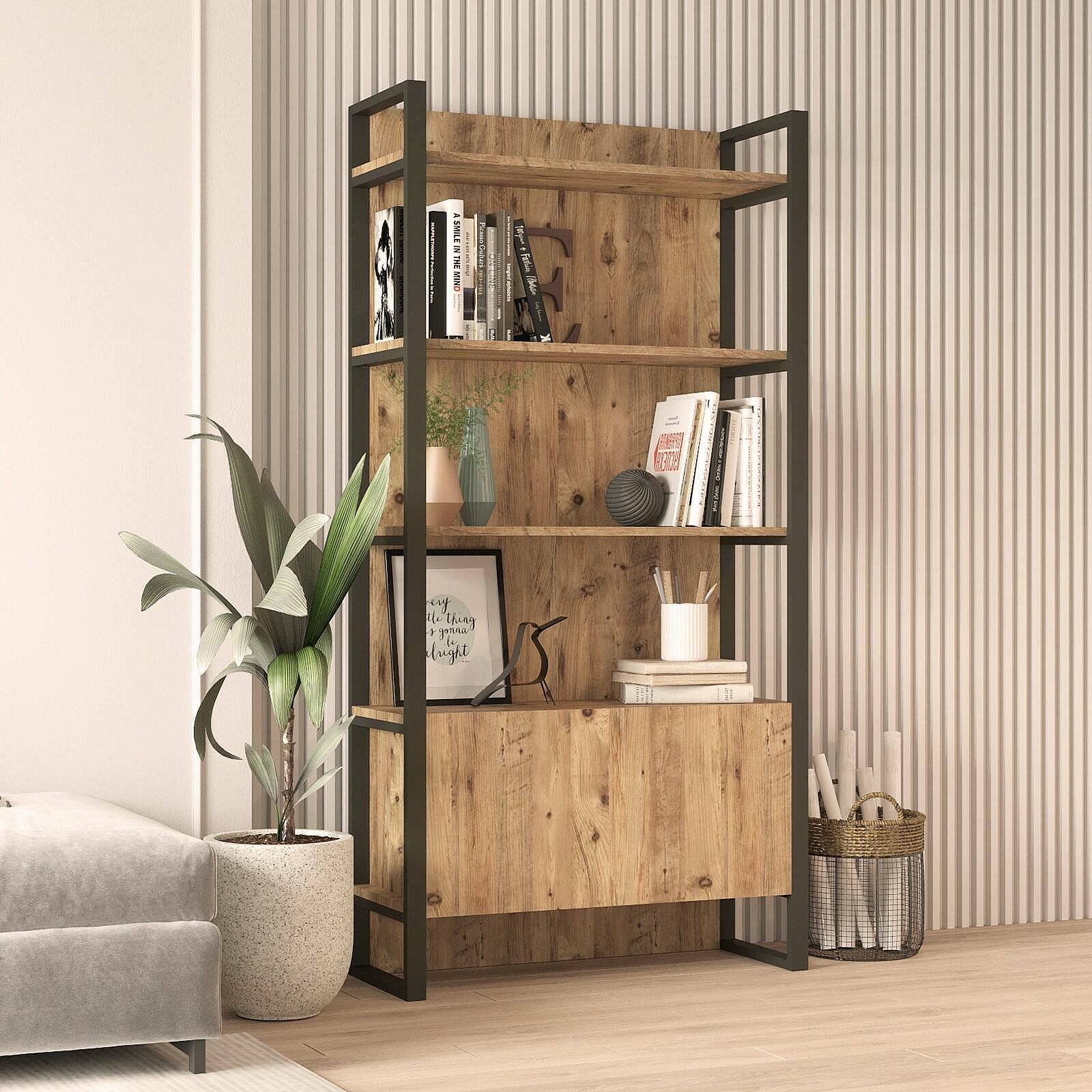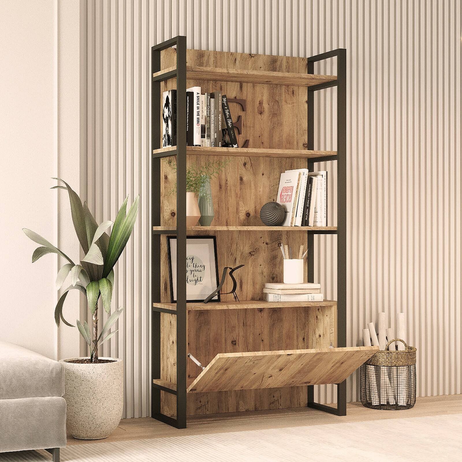 Bibliothèque Dabardonad, Etagère de bureau, Porte-livre mobile, Librairie, 90x34 h180 cm, Chêne