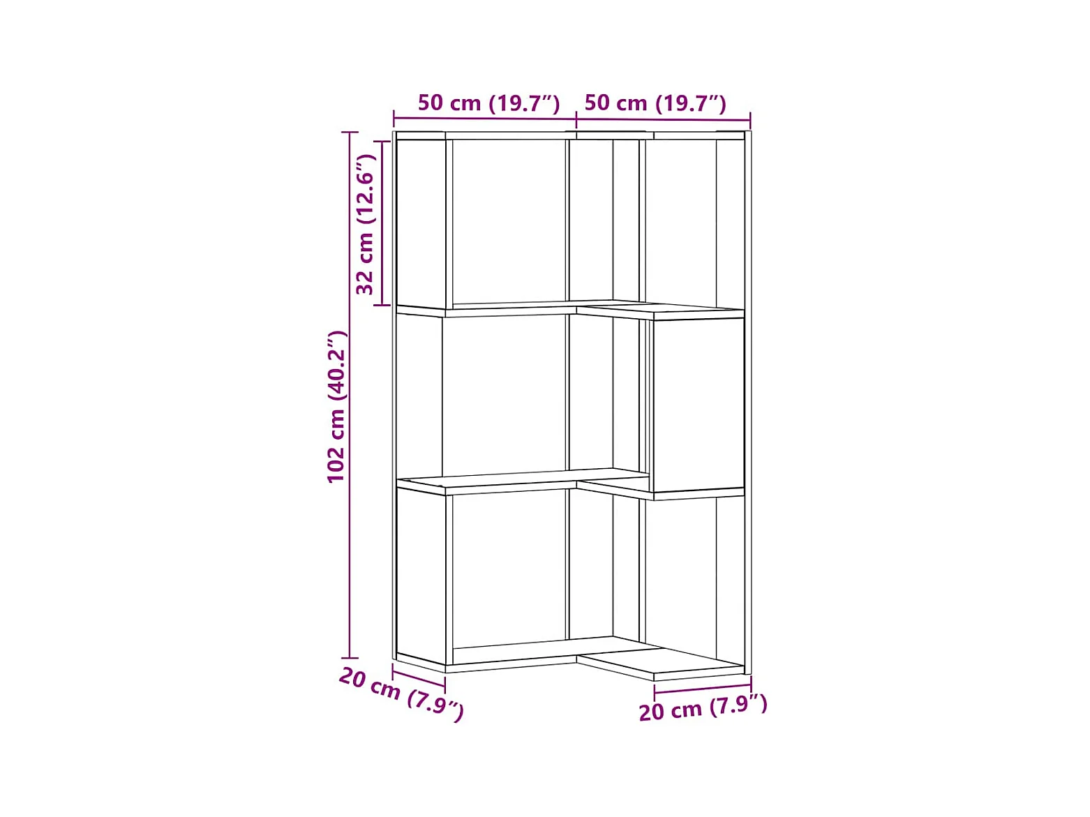 Bibliothèque d'angle à 4 niveaux chêne sonoma bois d'ingénierie