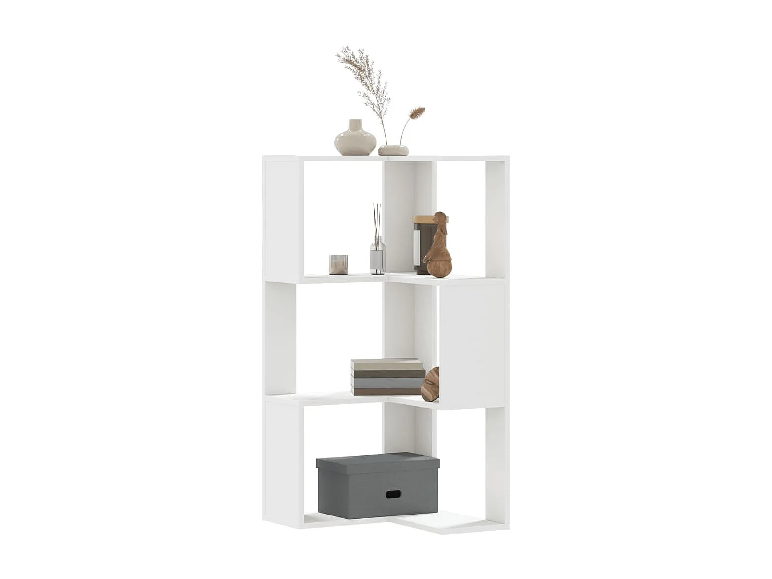 Bibliothèque d'angle à 3 niveaux blanc bois d'ingénierie