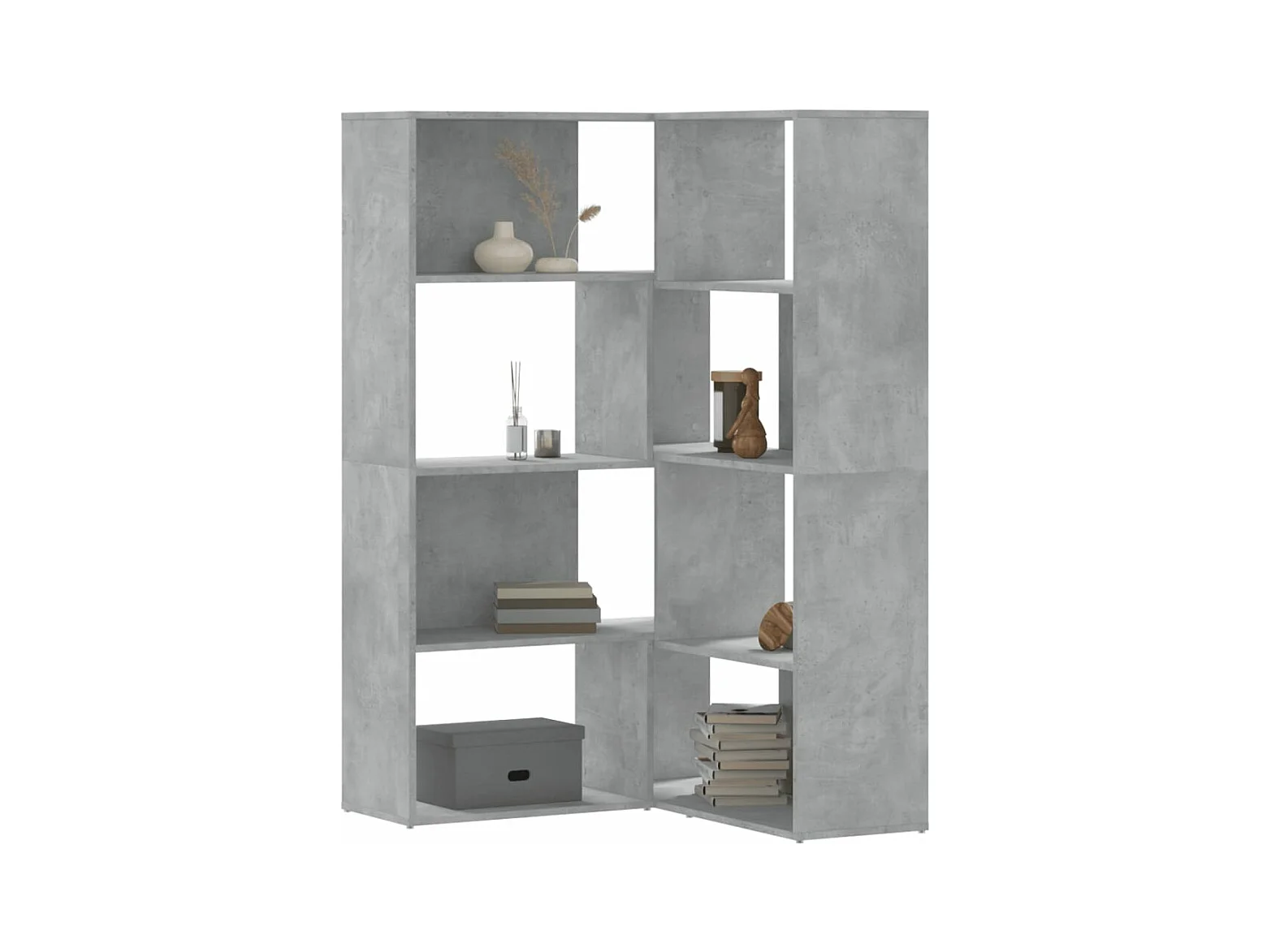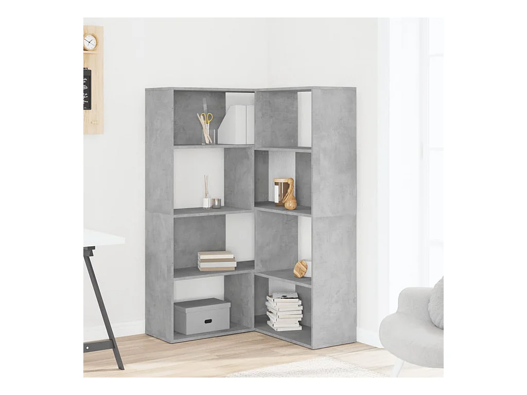 Bibliothèque d'angle à 4 niveaux gris béton bois d'ingénierie