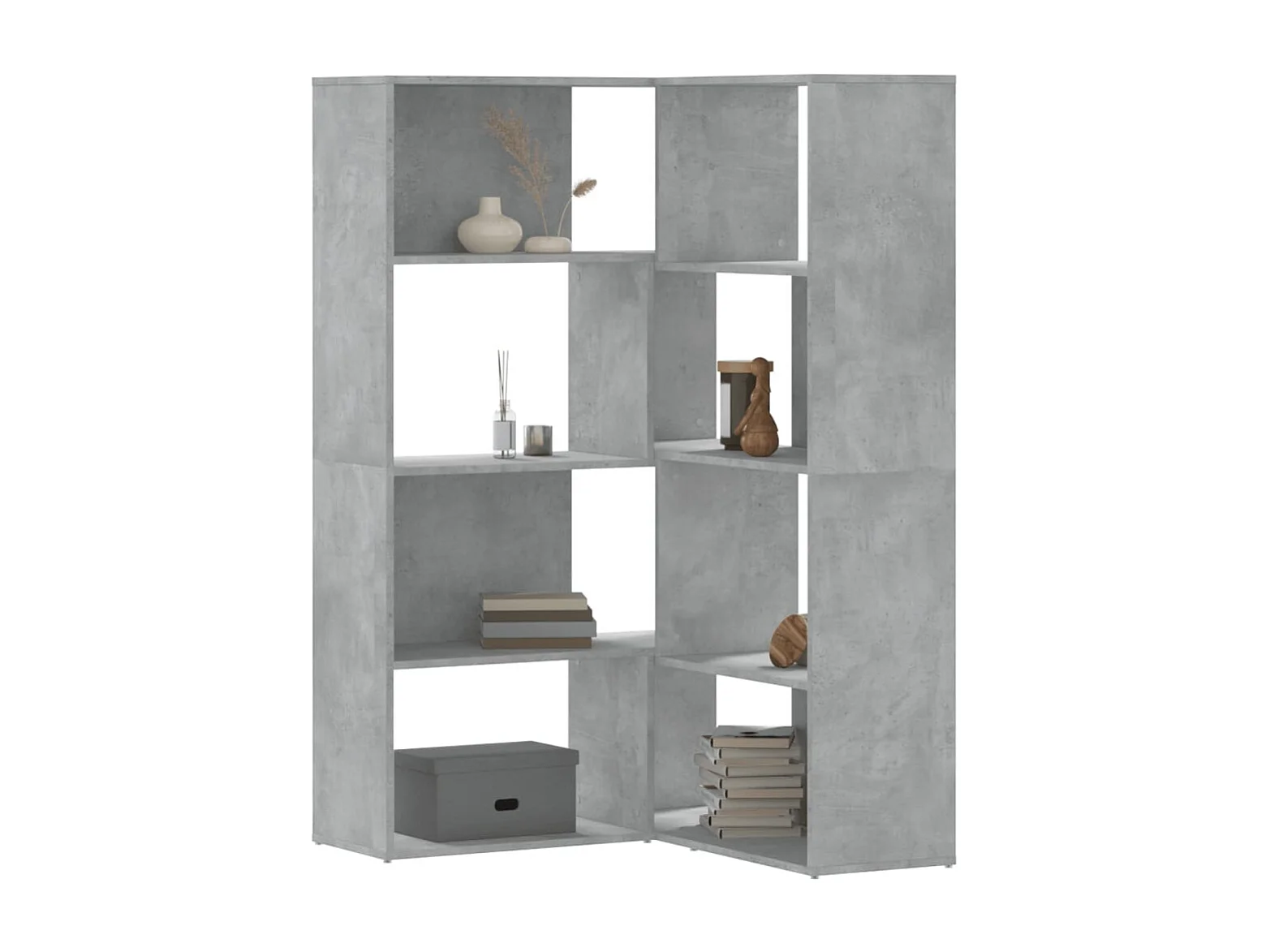 Bibliothèque d'angle à 4 niveaux gris béton bois d'ingénierie