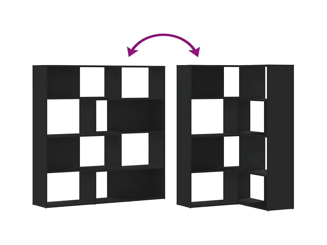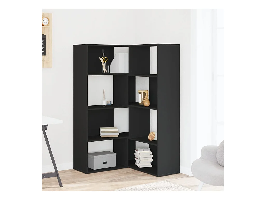 Bibliothèque d'angle à 4 niveaux noir bois d'ingénierie