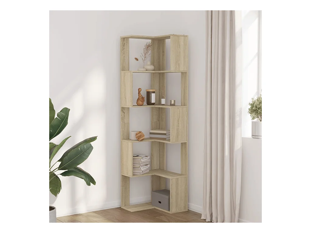 Bibliothèque d'angle à 5 niveaux chêne sonoma bois d'ingénierie