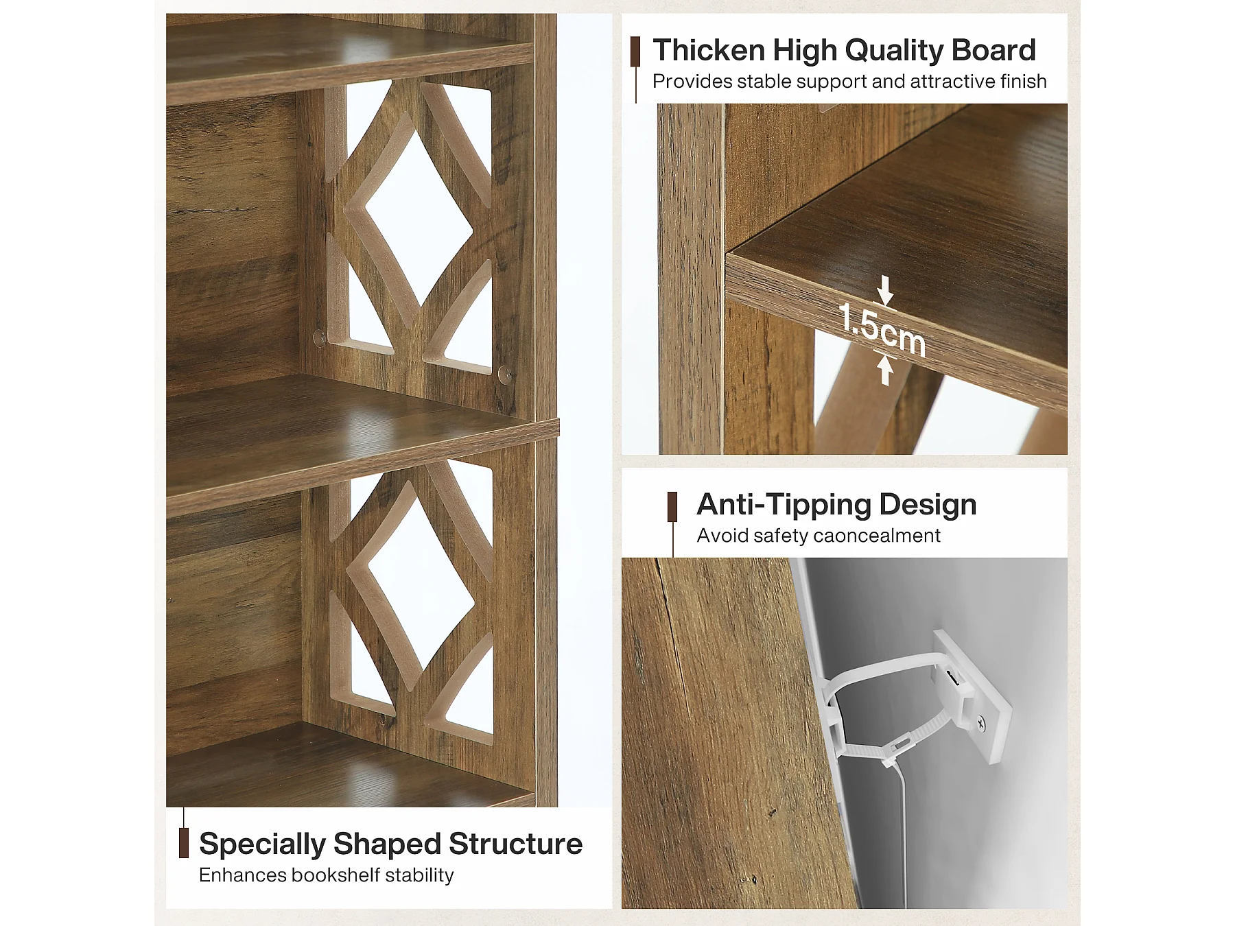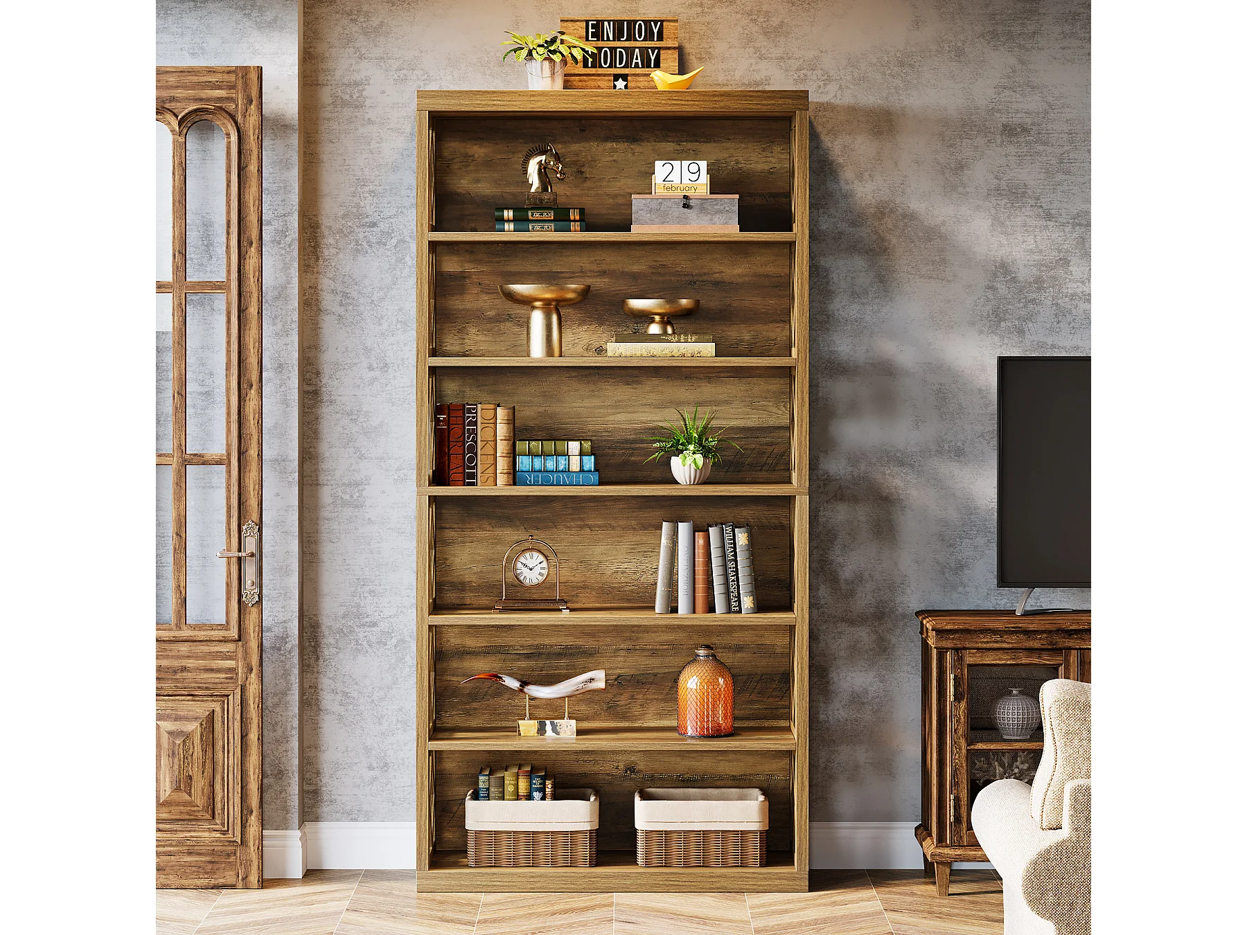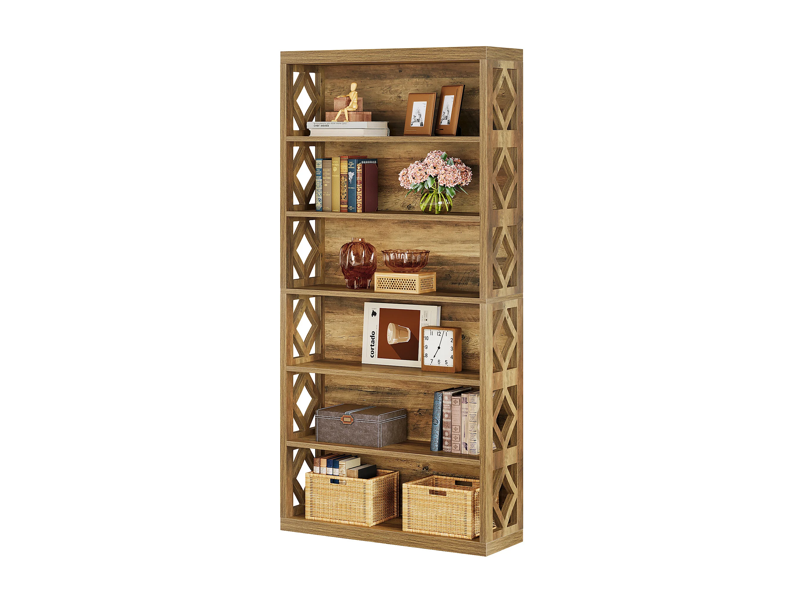 Bibliothèque de 190 cm de haut, étagère industrielle à 7 niveaux avec rangement, étagères de rangement ouvertes sur pied