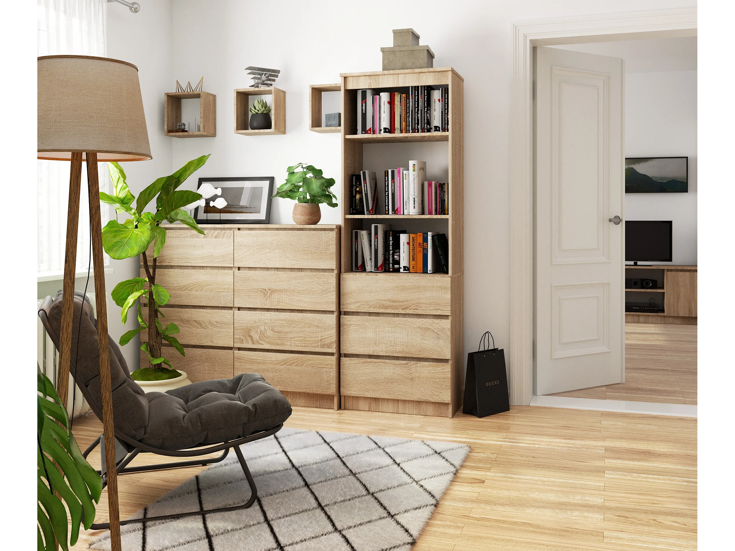 Bibliothèque de bureau AKORD R60 Chêne Sonoma 60 cm 3 tiroirs façade Chêne Sonoma mat 3 étagères 60x35x180 cm