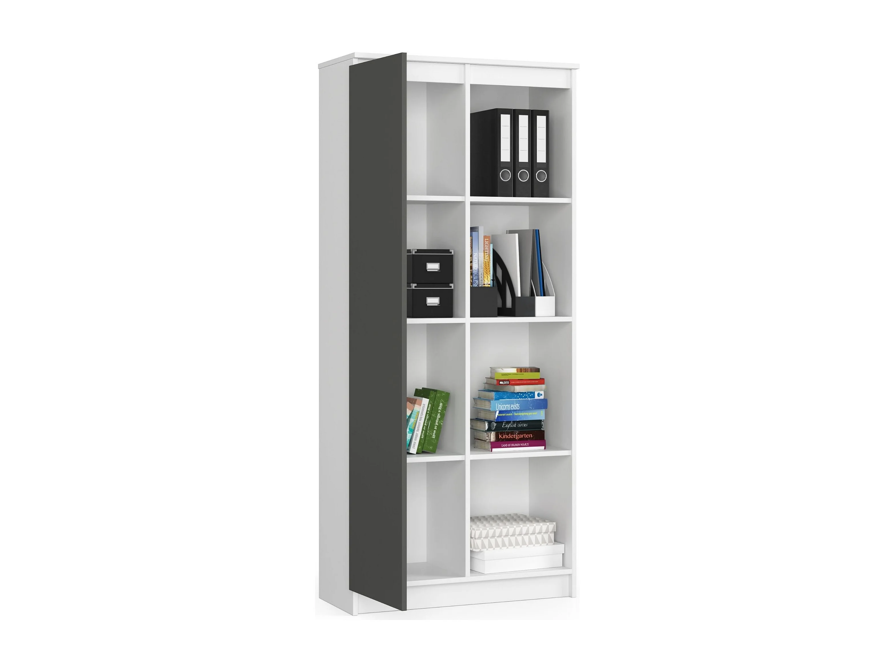 Bibliothèque de bureau AKORD R80 Blanche 80 cm 1 porte façade Gris Graphite mat 8 étagères 80x35x180 cm