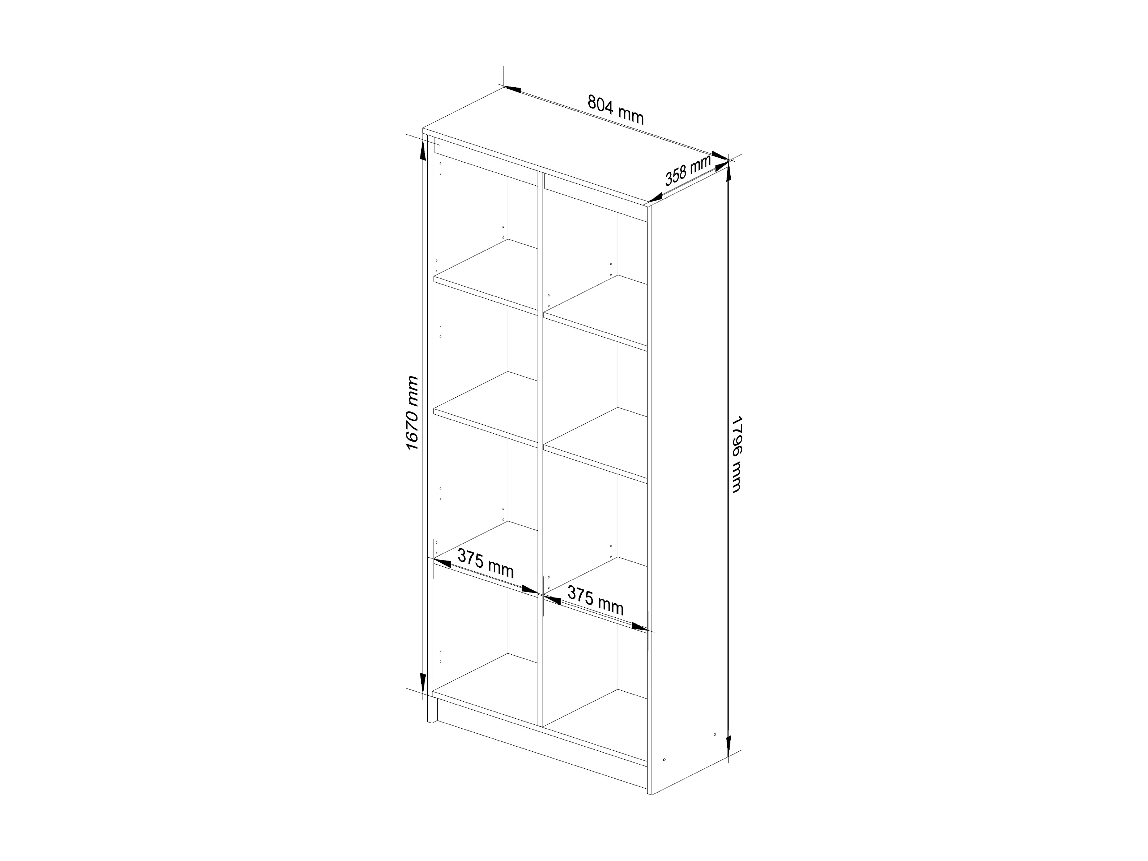 Étagère de bureau AKORD R80 Blanche 80 cm 8 étagères 80x35x180 cm