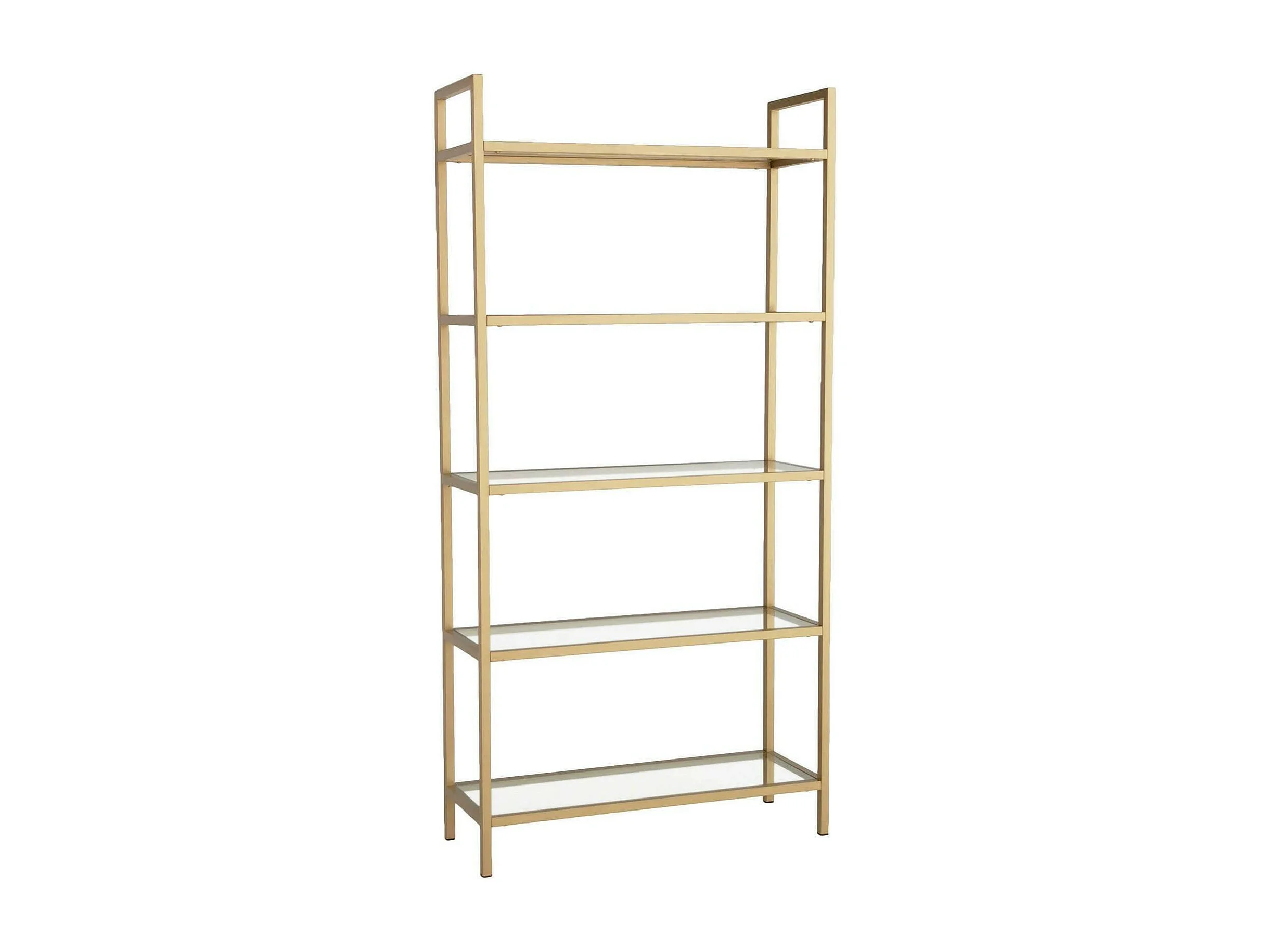 Bibliothèque Delphini, Etagère de bureau, Porte-livre mobile, Librairie, 80x30h165 cm, Or