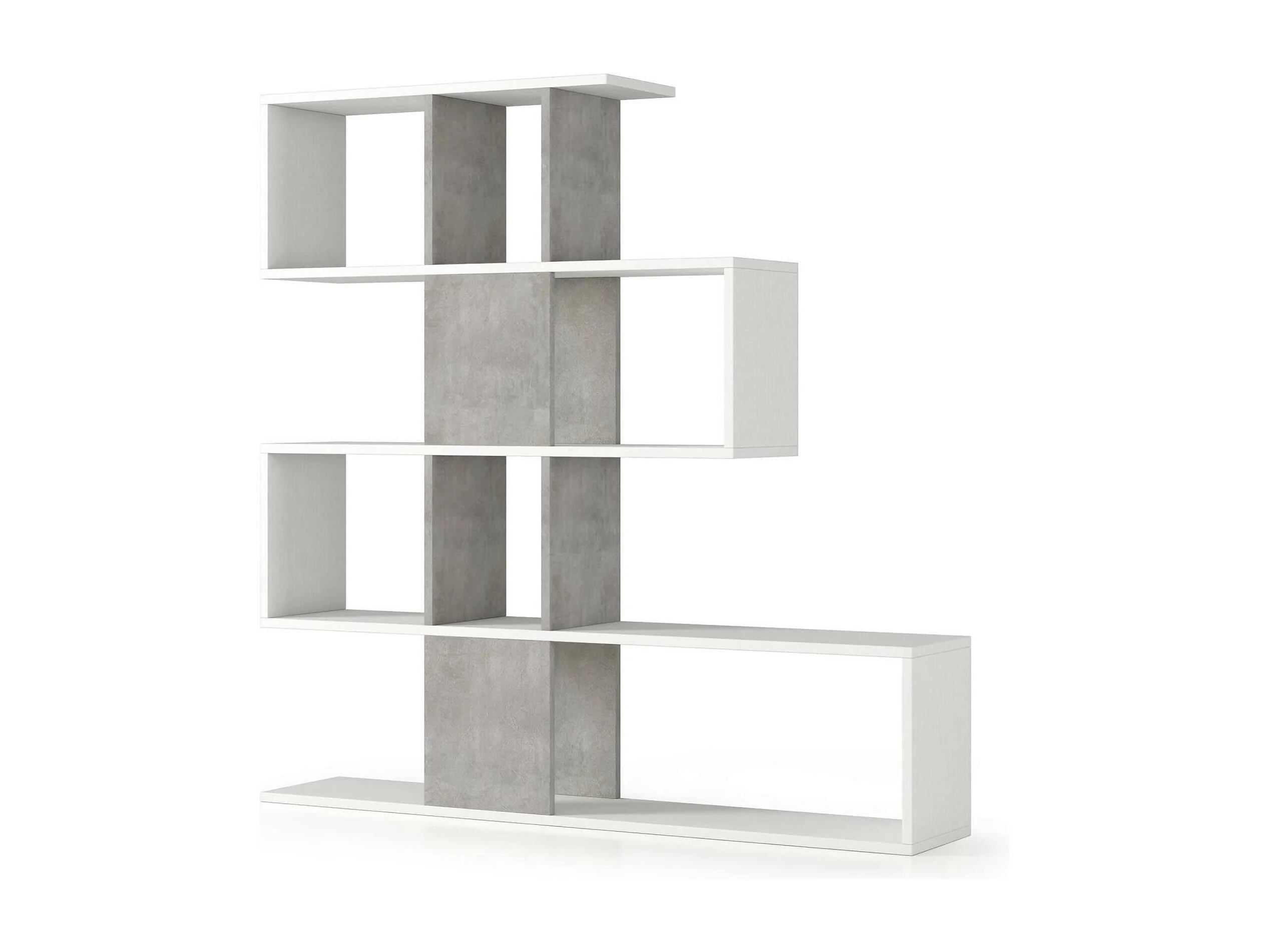 Dmora - Bibliothèque Allison, 145 x 29 x h 145 cm, blanc, ciment, Panneau effet bois