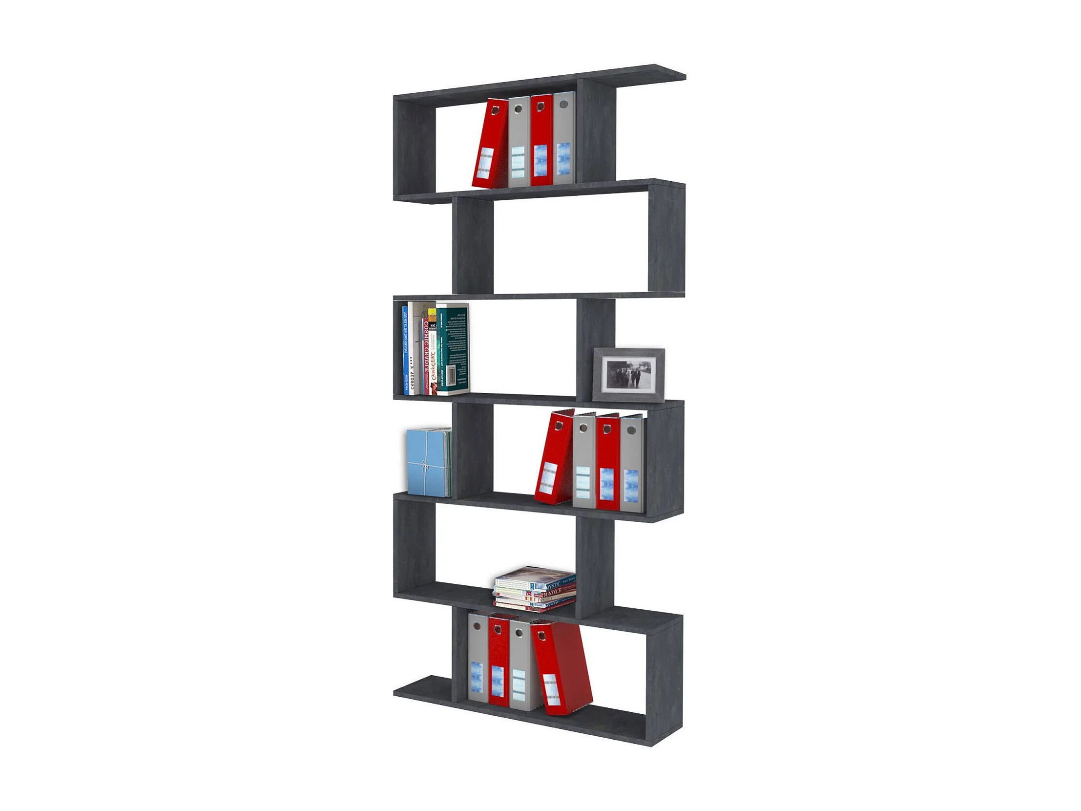 Bibliothèque Dgiovan, Meuble avec étagères, Bibliothèque de bureau, 100% Made in Italy, 80x25h192 cm, Ardoise