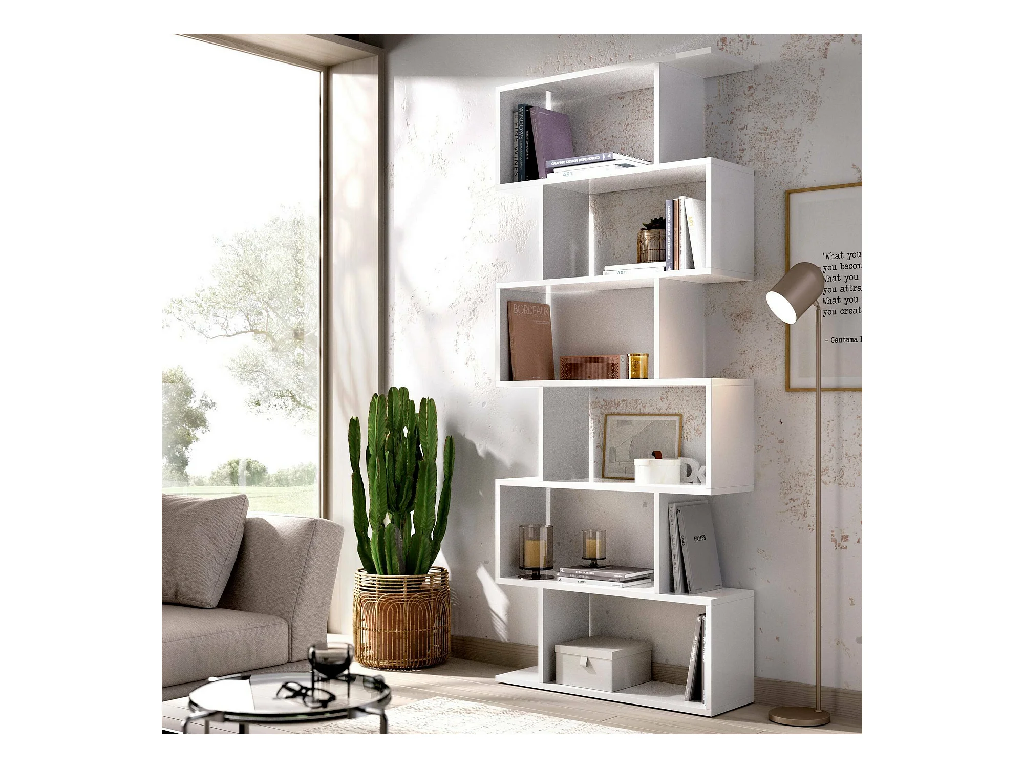 Bibliothèque Misma, Etagère de bureau polyvalente, Bibliothèque avec 5 étagères, 80x25h190 cm, Blanc