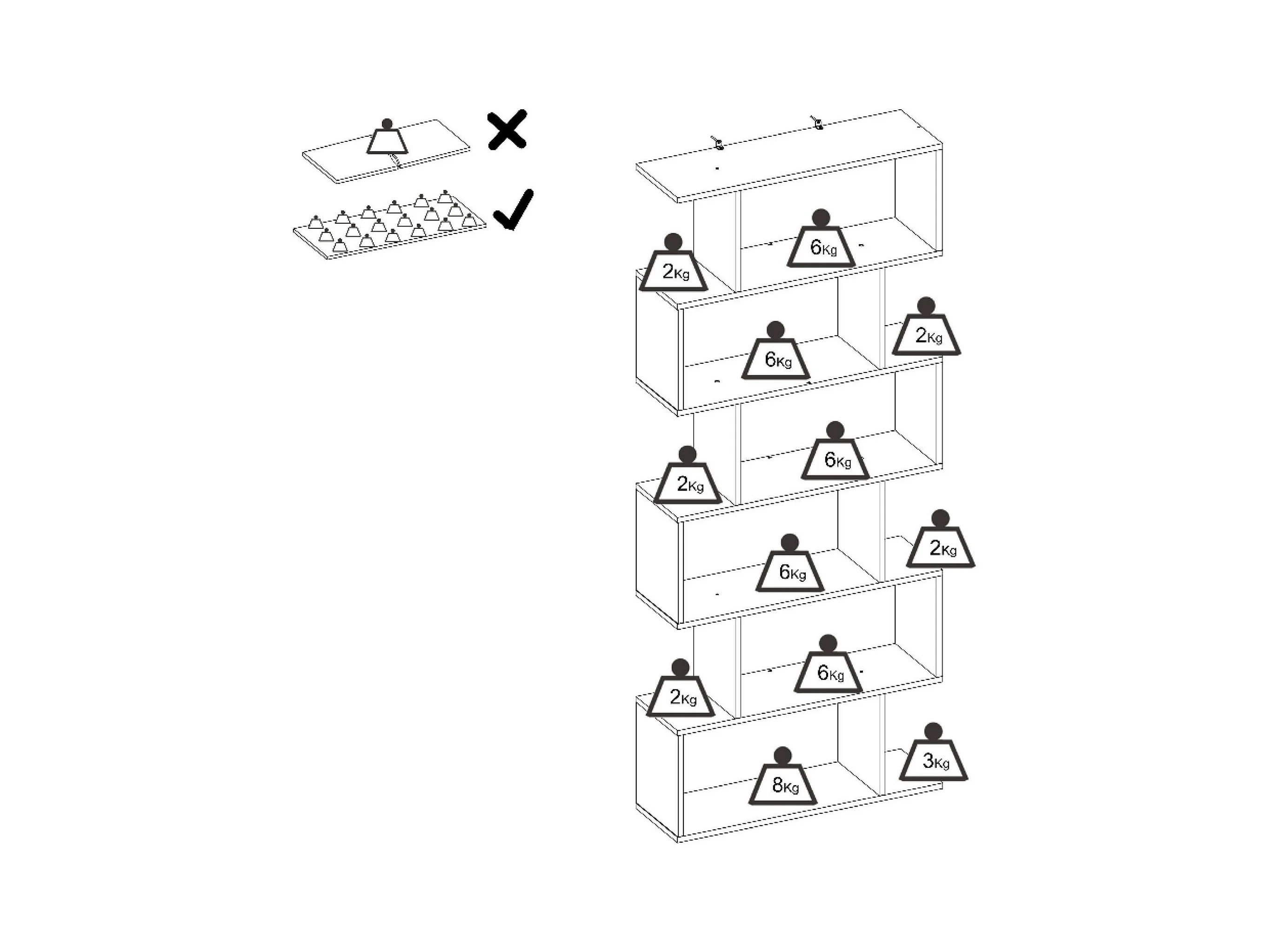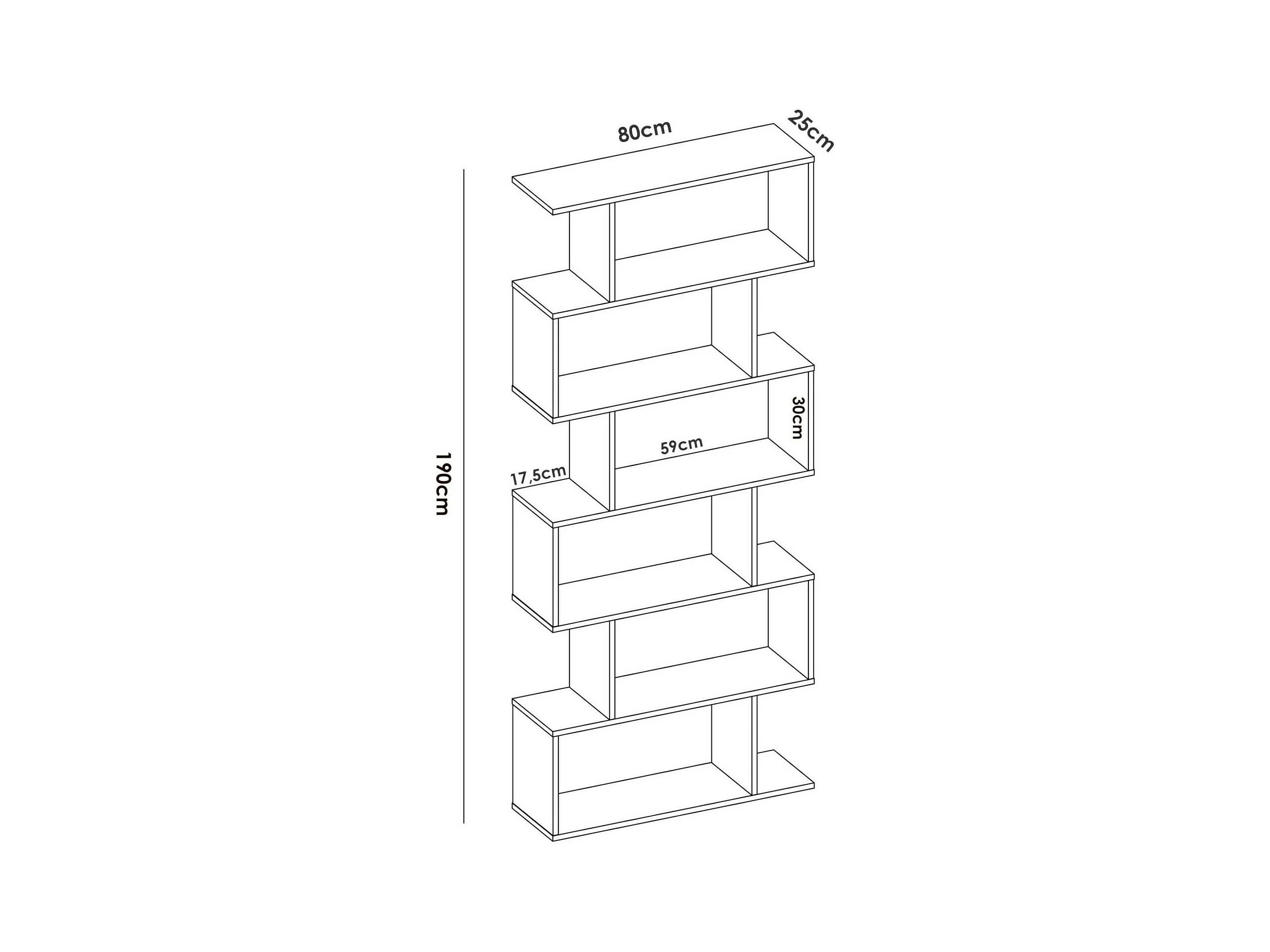 Bibliothèque Fremont, Bibliothèque multi-positions avec 8 compartiments, Etagère de bureau, Etagère de séparation de pièce, 80x25h180 cm, Blanc et Oxyde