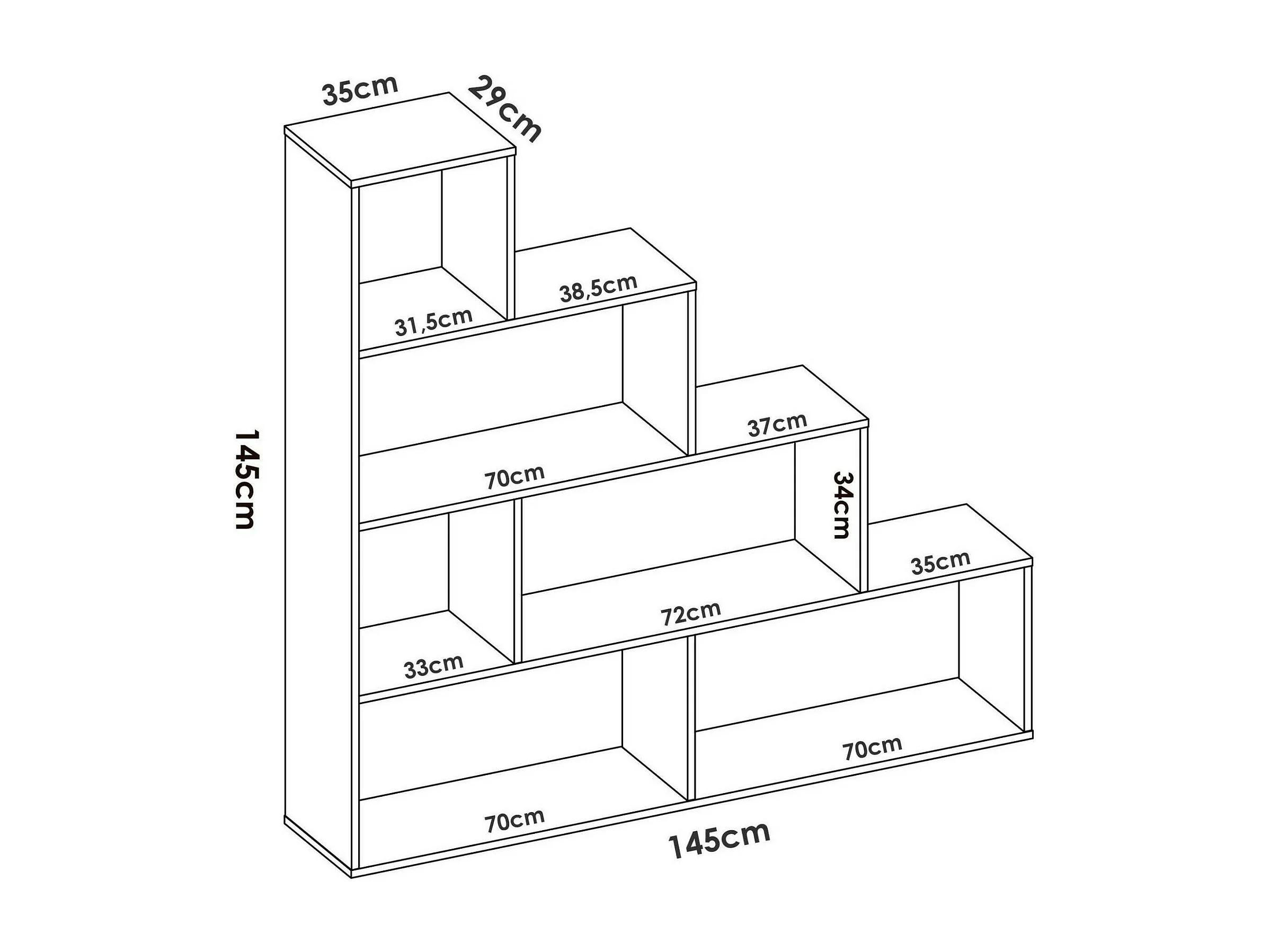 Bibliothèque Damago, Bibliothèque avec 7 compartiments, Étagère de bureau moderne, Armoire murale avec étagères, 145x29h145 cm, Blanc et Ciment