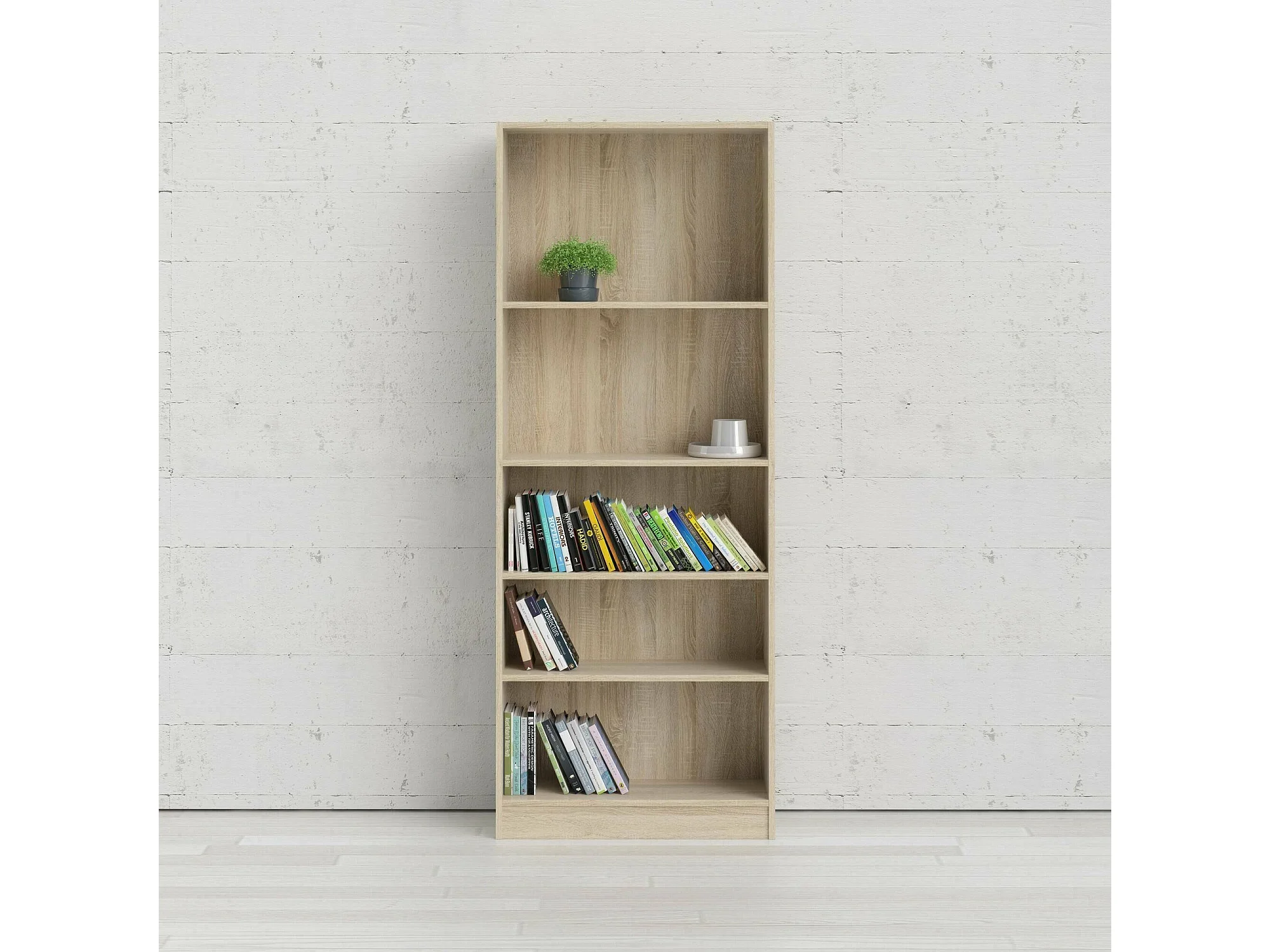 Bibliothèque Driber, Etagère de bureau, Porte-livre mobile, Librairie, 79x27 h203 cm, Chêne