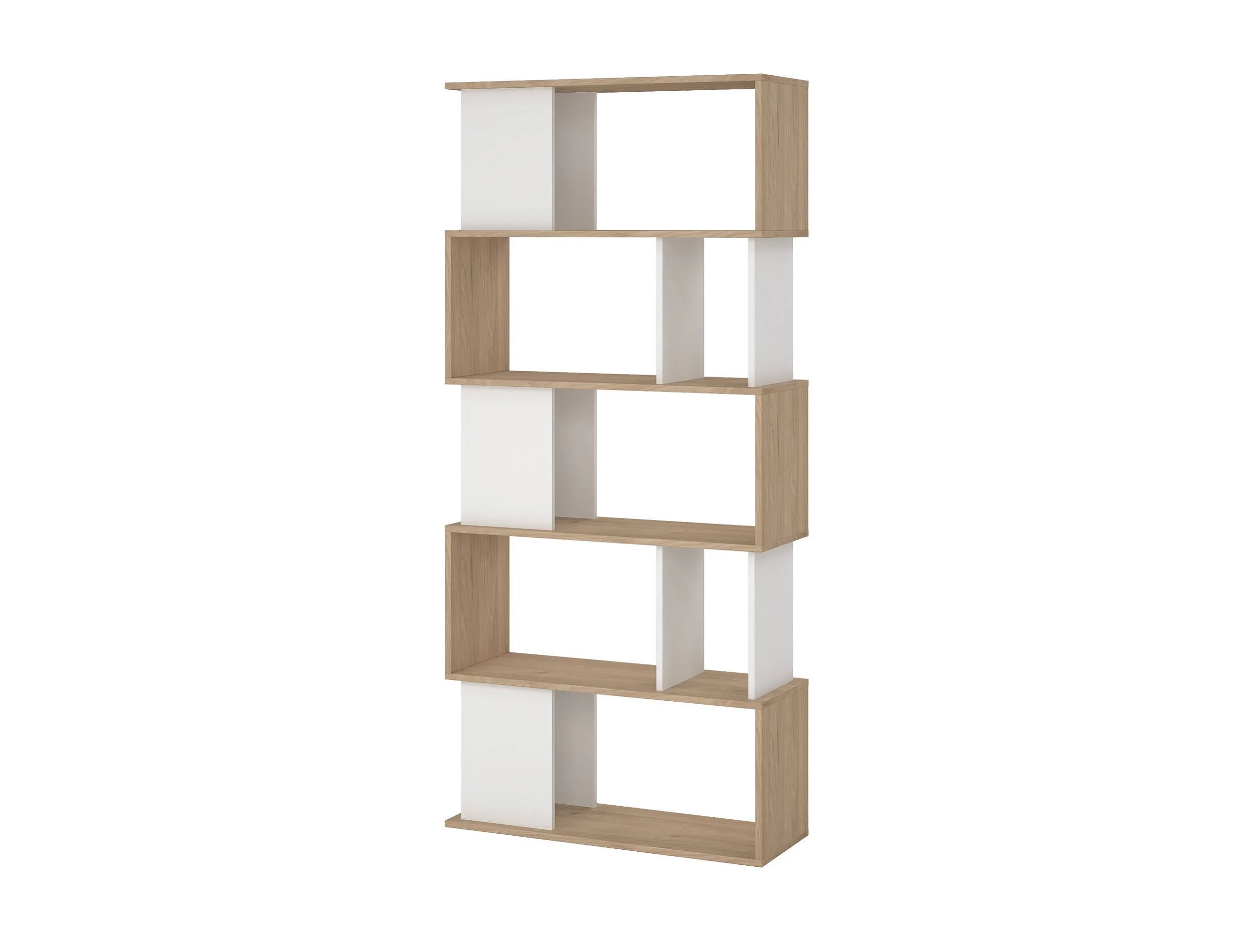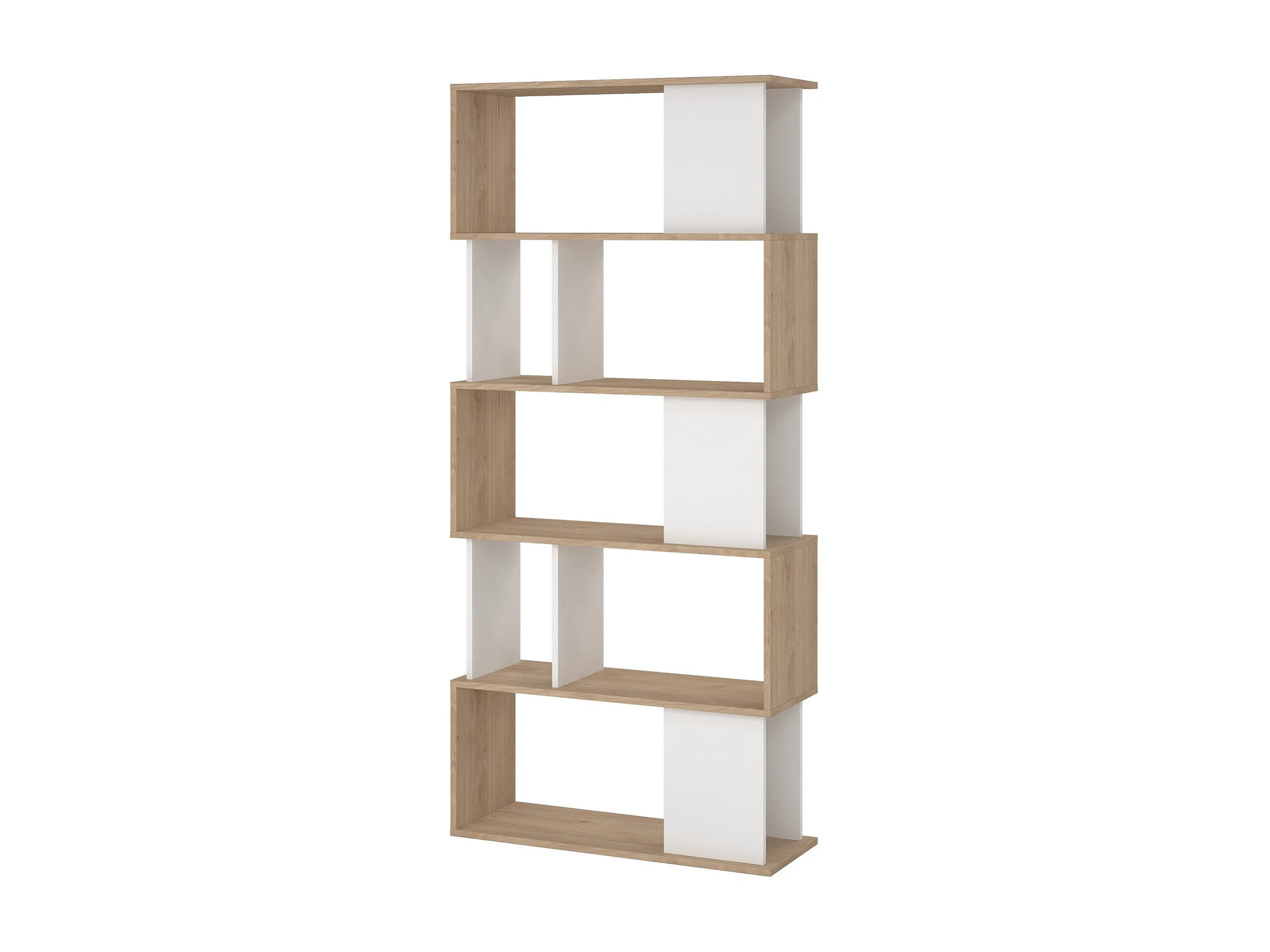 Bibliothèque Dscamacc, Etagère de bureau, Porte-livre mobile, Librairie, 80x30 h174 cm, Chêne clair et Blanc