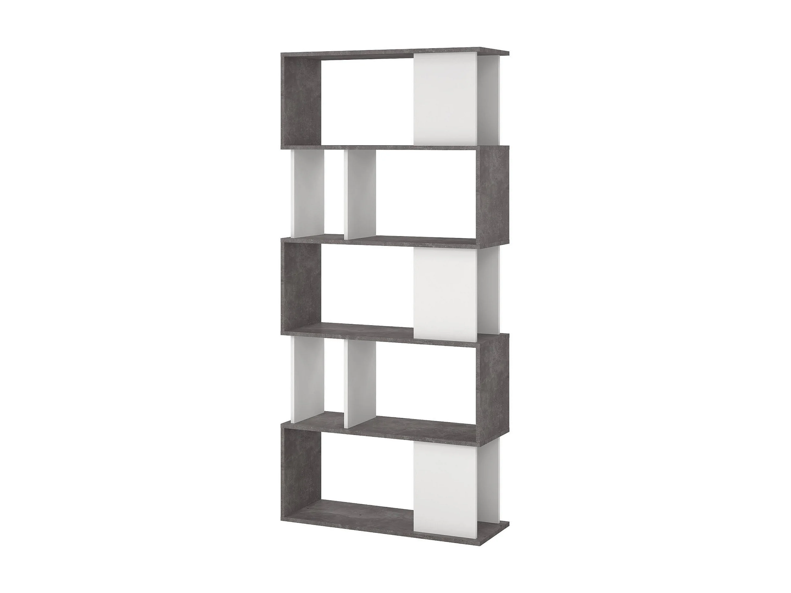 Bibliothèque Dscamacc, Etagère de bureau, Porte-livre mobile, Librairie, 80x30 h175 cm, Ciment et blanc