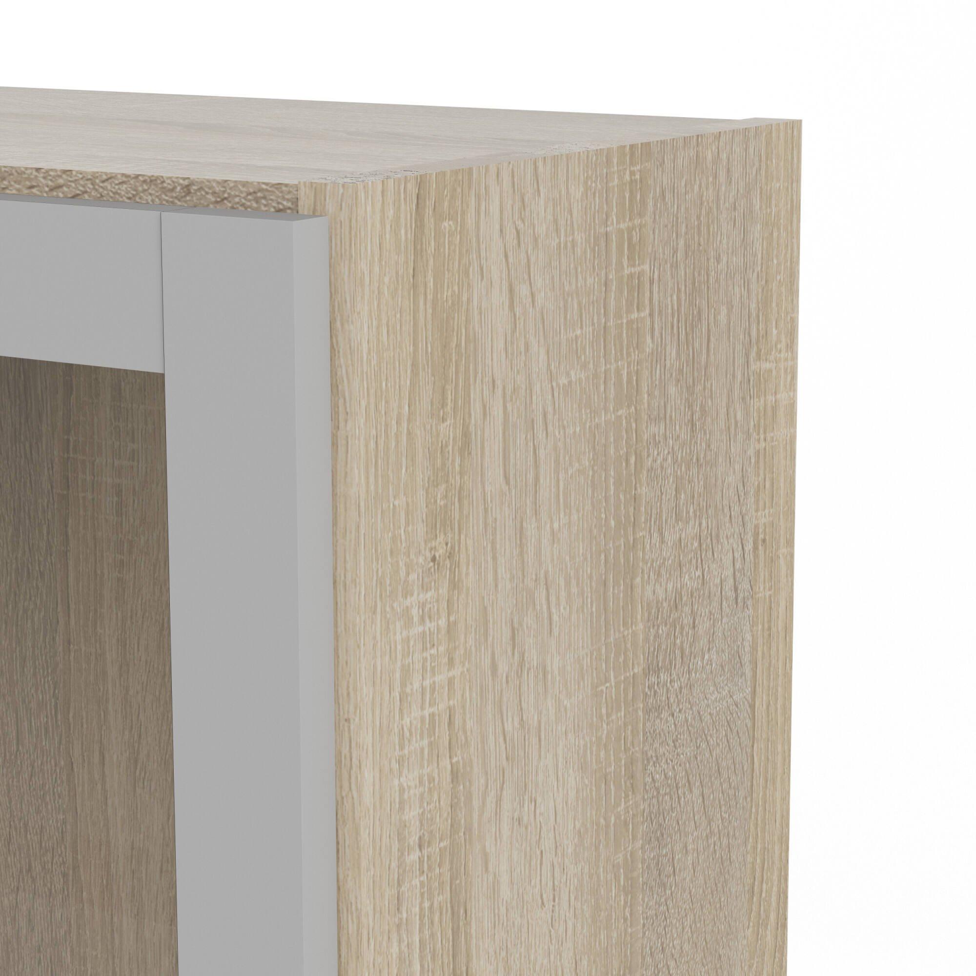 Bibliothèque Dsitu, Etagère de bureau, Porte-livre mobile, Librairie, 41x28 h203 cm, Chêne et Blanc