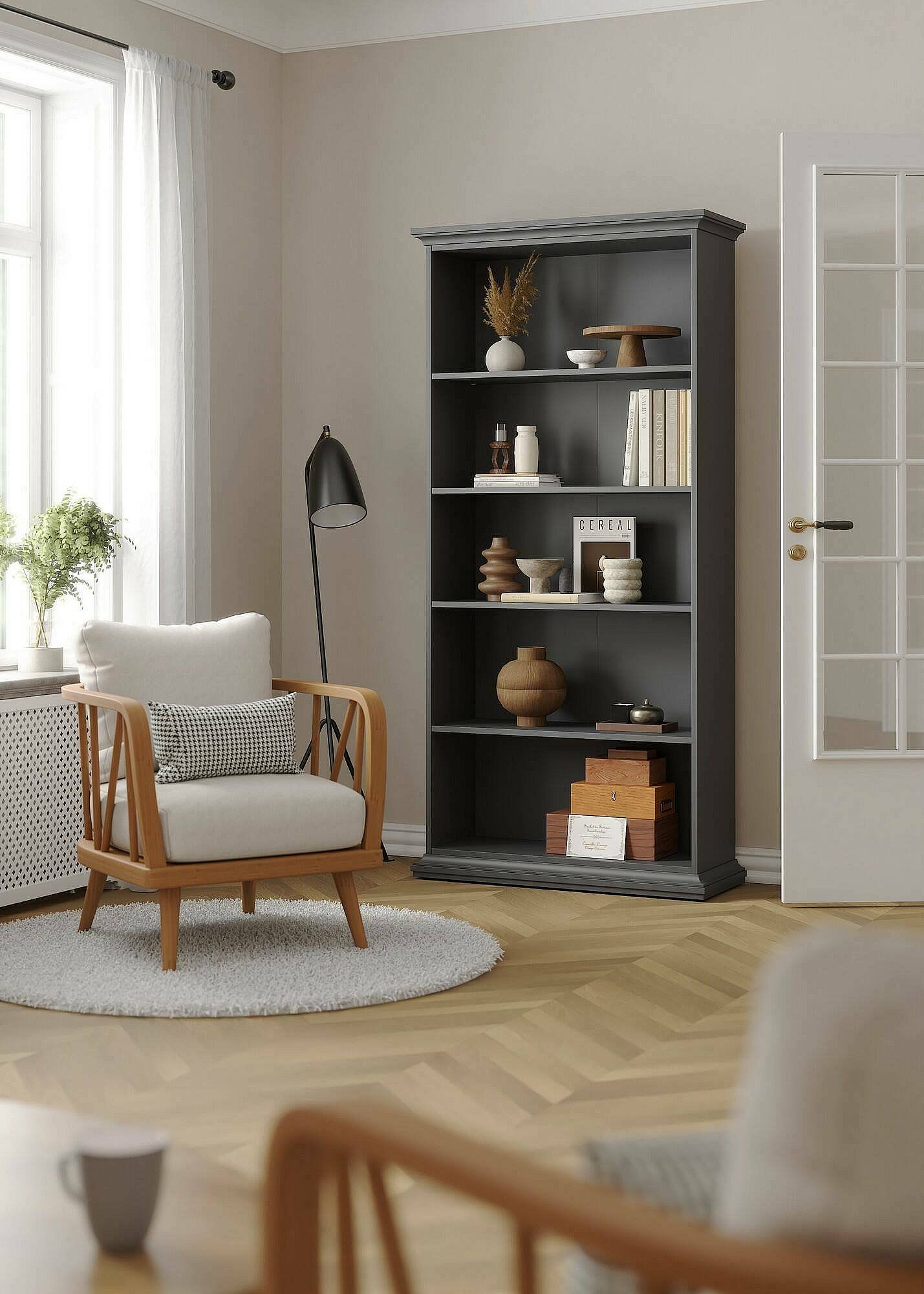 Bibliothèque Dtaran, Etagère de bureau, Porte-livre mobile, Librairie, 96x37 h201 cm, Gris