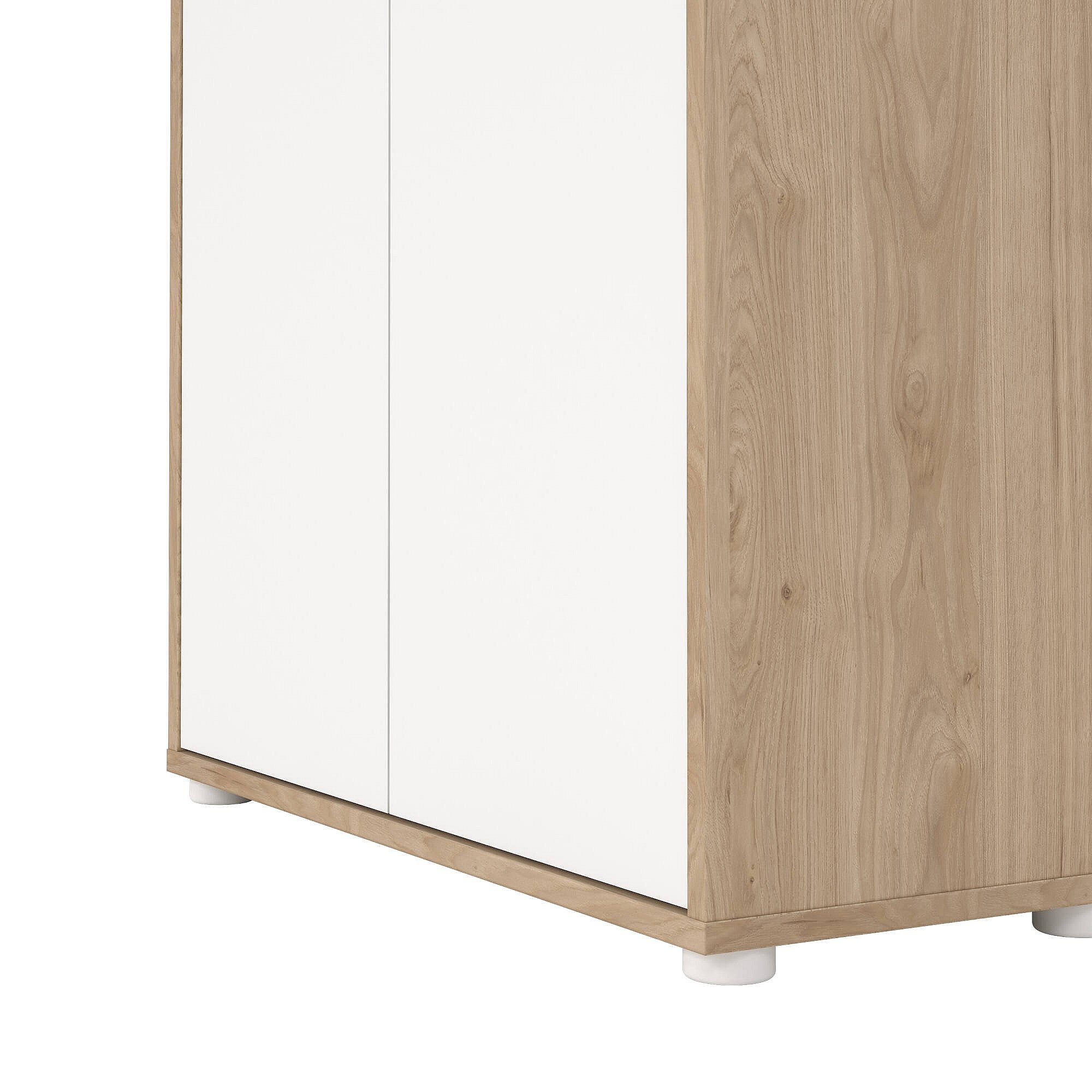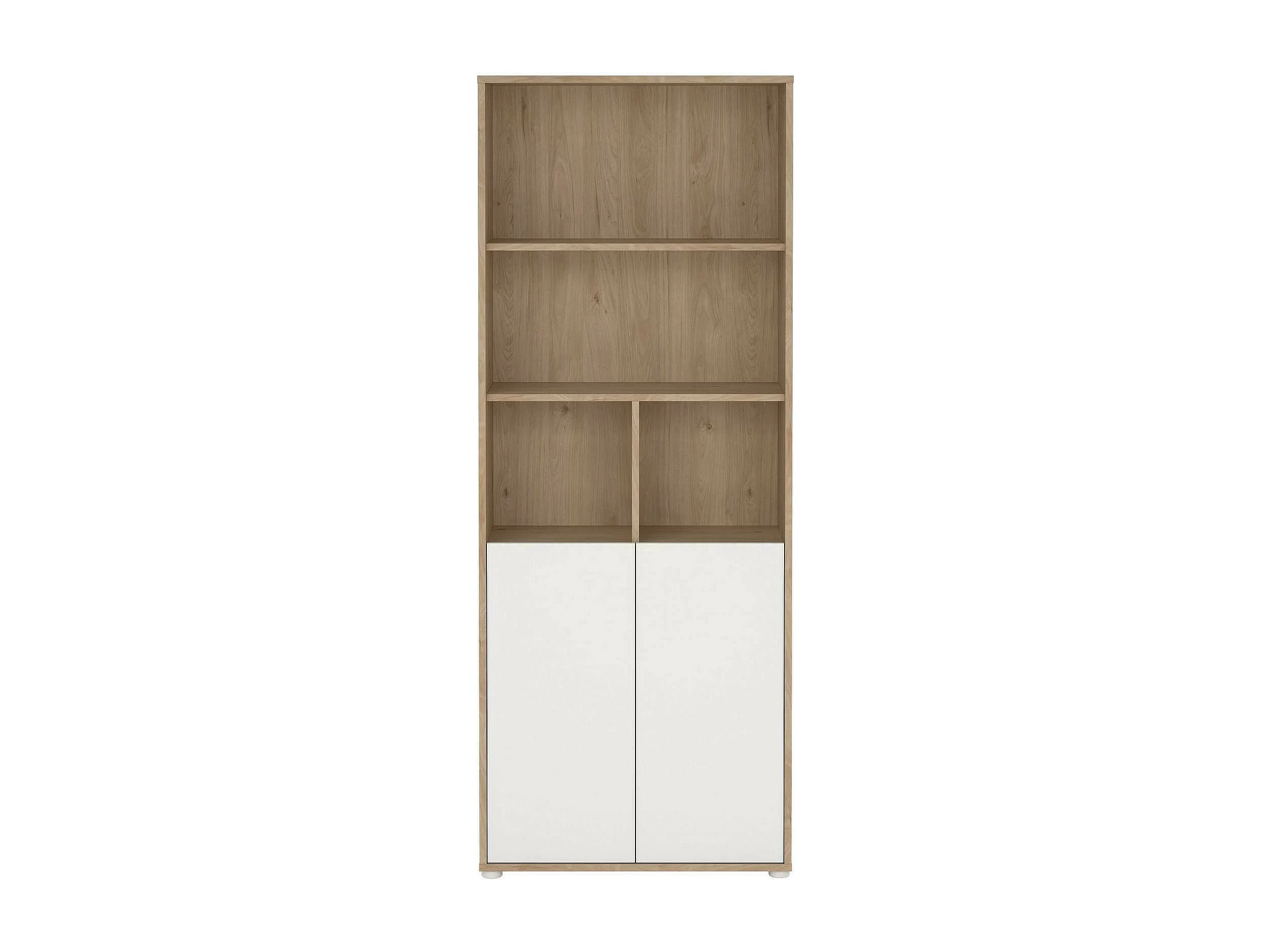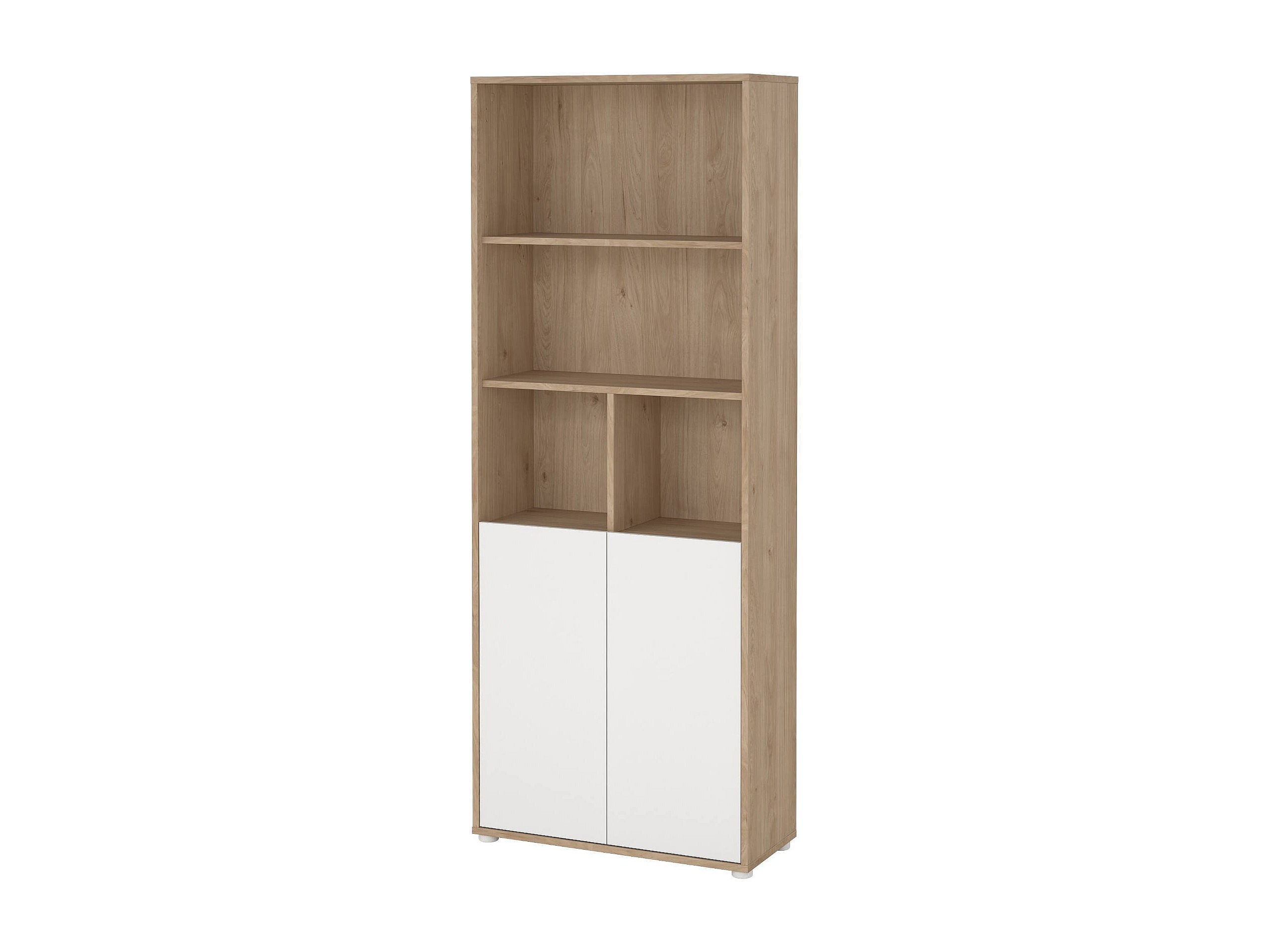 Bibliothèque Dtassott, Etagère de bureau, Porte-livre mobile, Librairie, 80x34 h205 cm, Chêne clair et Blanc
