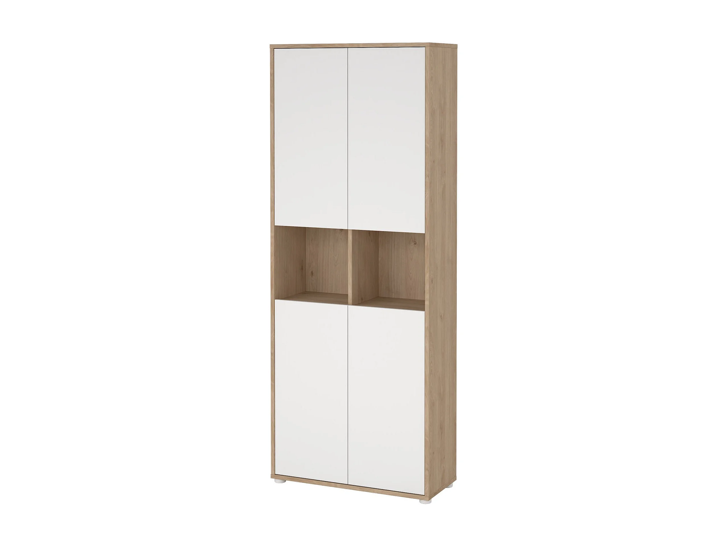 Bibliothèque Dtavca, Etagère de bureau, Porte-livre mobile, Librairie, 80x34 h205 cm, Chêne clair et Blanc