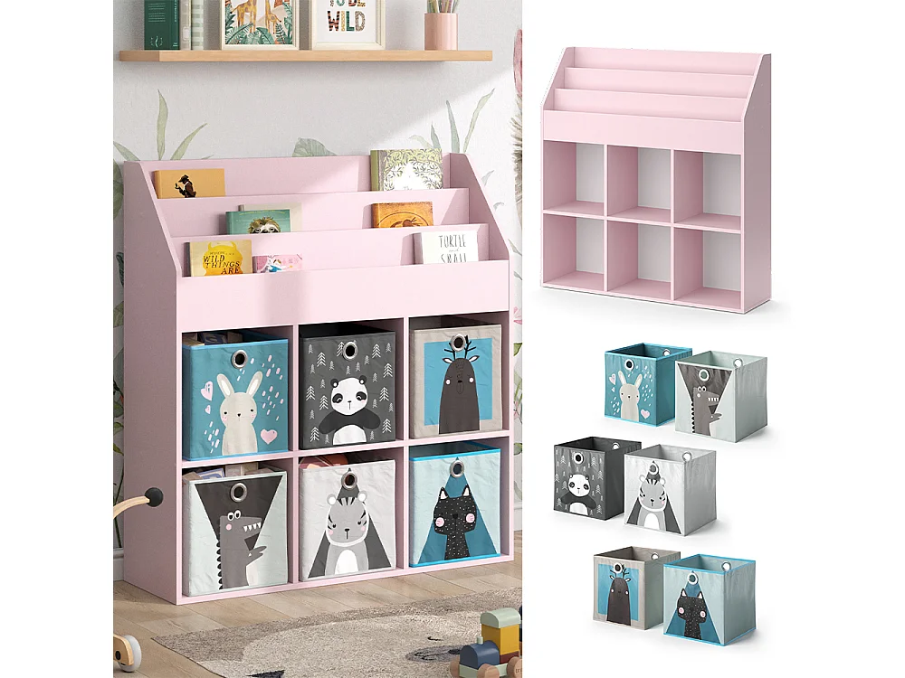 Bibliothèque enfant rose 107.2x31.2x114.2 luigi