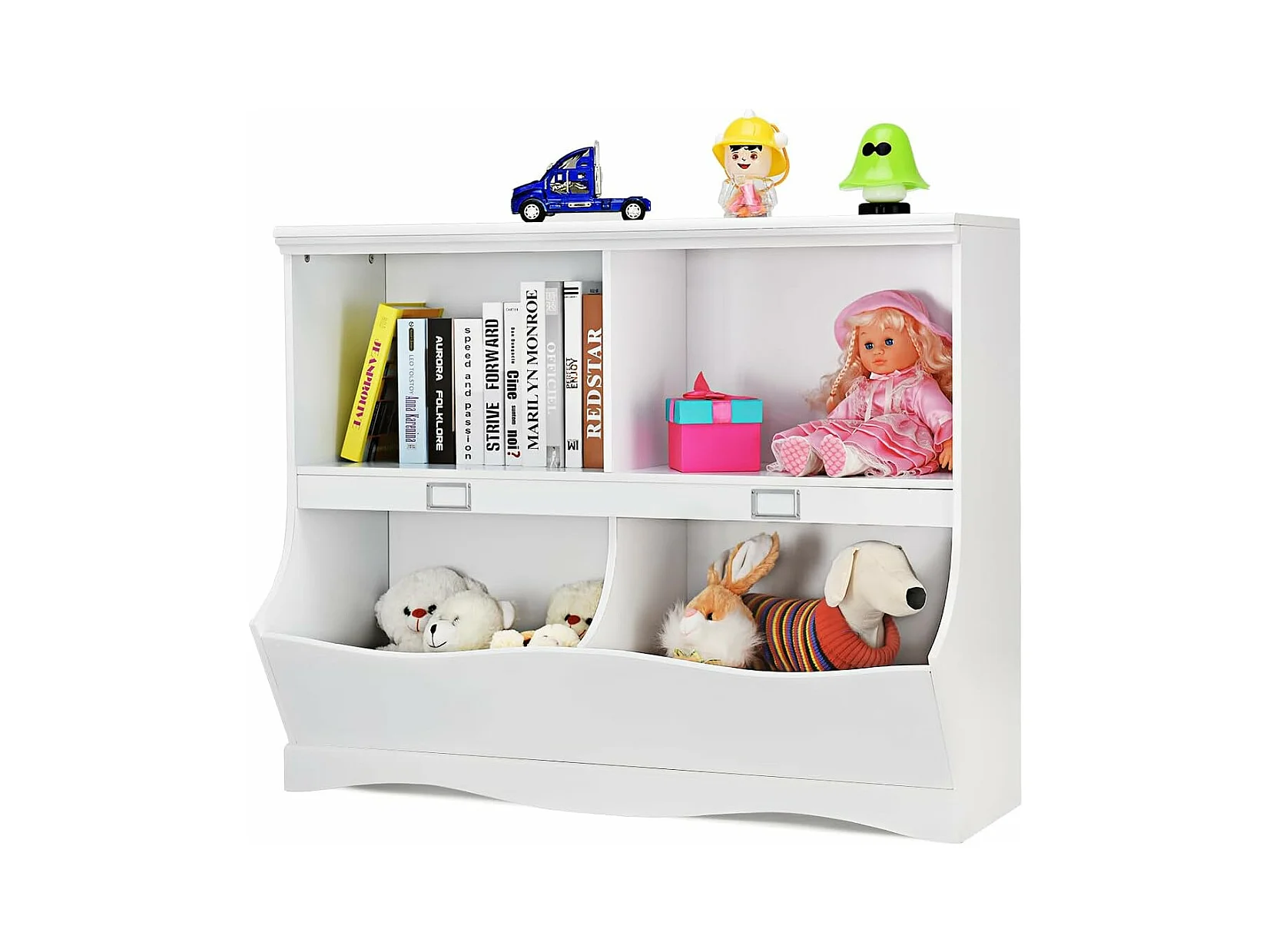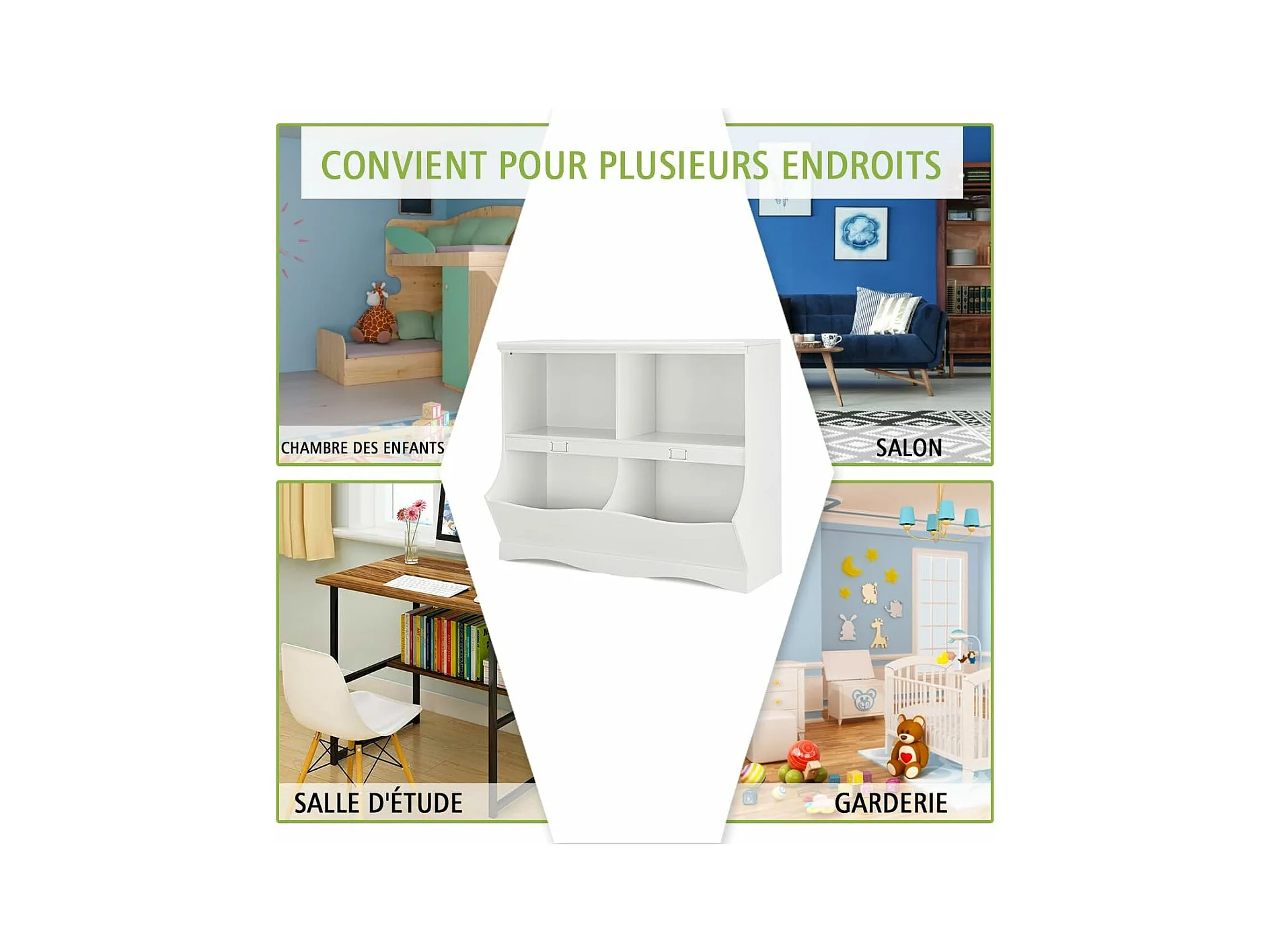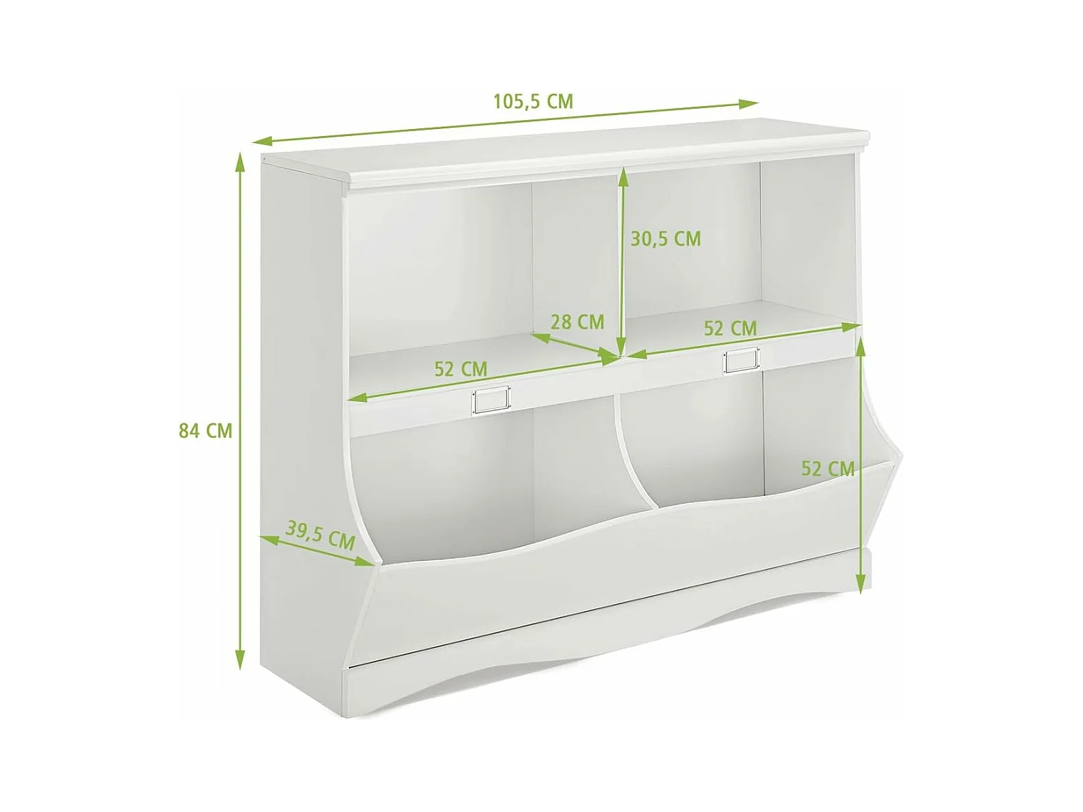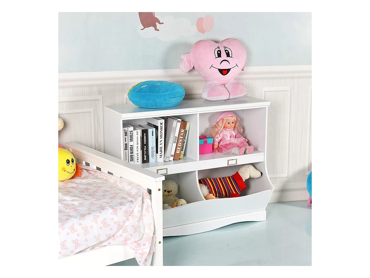 Bibliothèque enfants avec 4 compartiments, avec base en forme vague, 105,5 x 39,5 x 84 cm