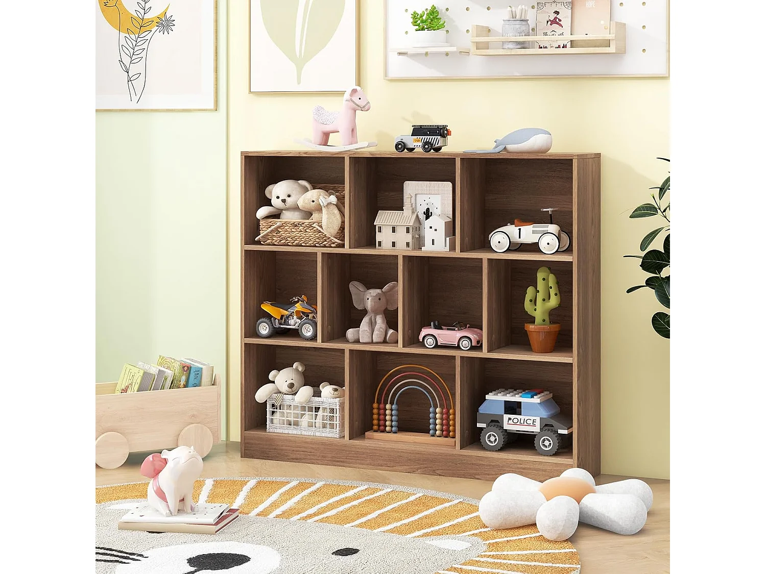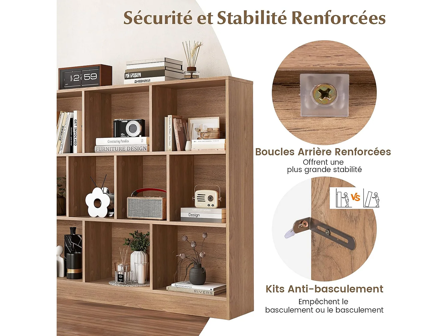Bibliothèque étagère à 10 compartiments ouverts, meuble de rangement à 3 niveaux (naturel)