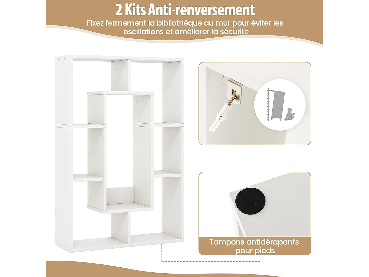 Étagère murale et autoportante – compartiments asymétriques – blanc – 180 × 50 cm – BEMMI