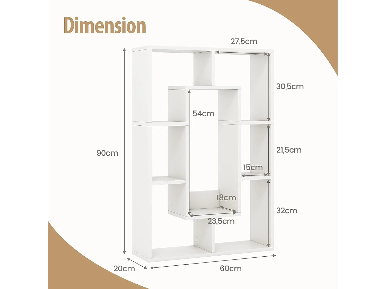 Bibliothèque, étagère à 7 compartiments ouvertes, 20 x 60 x 90 cm (blanc)