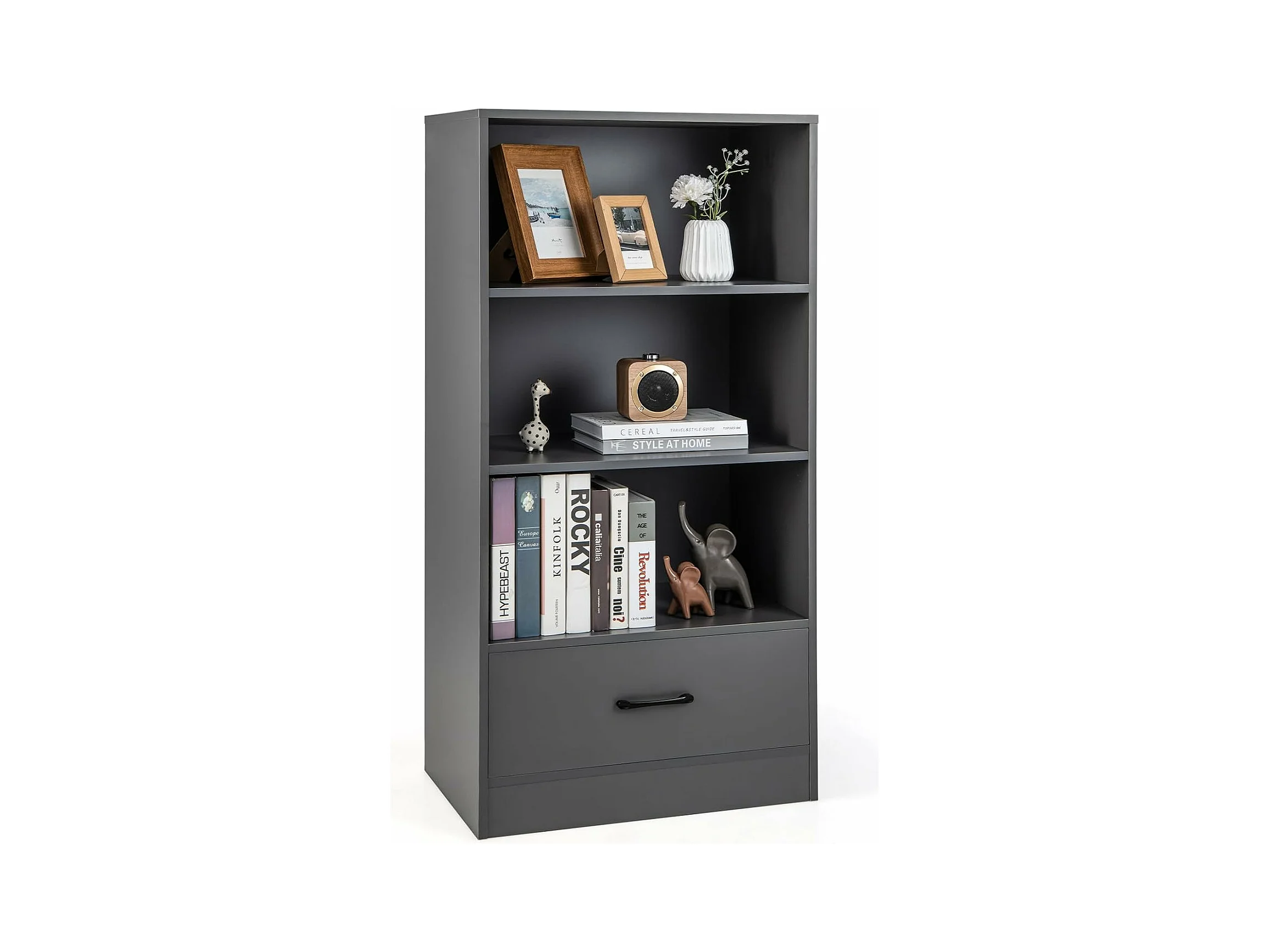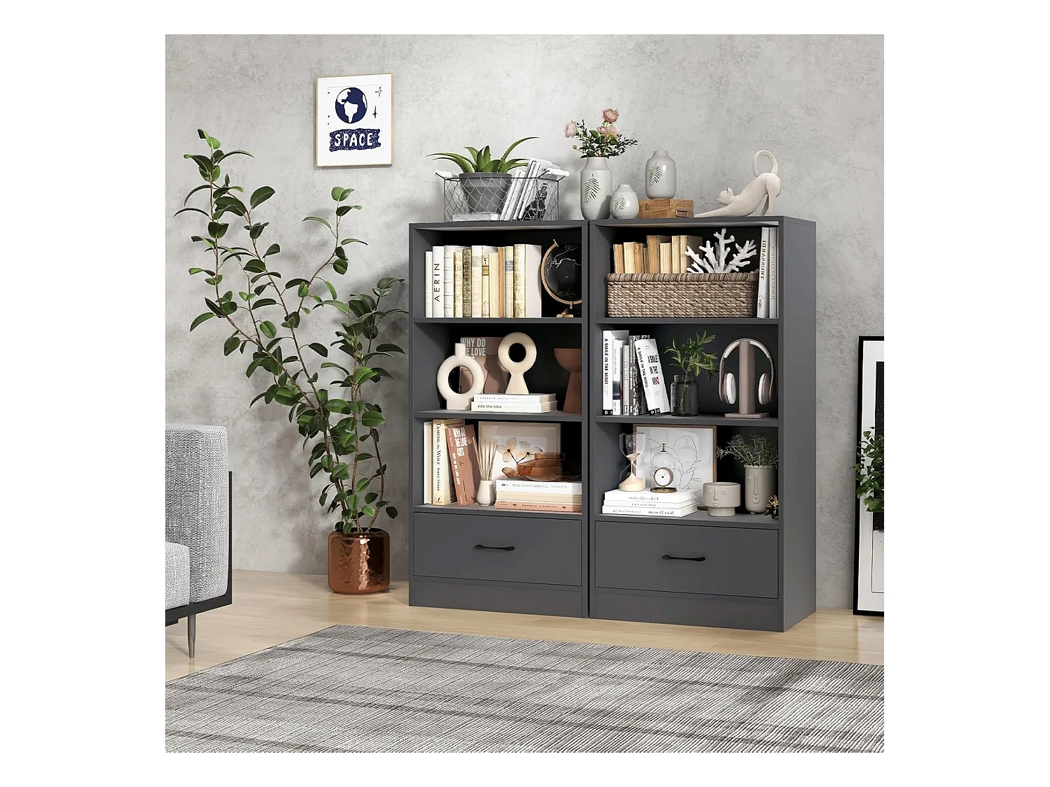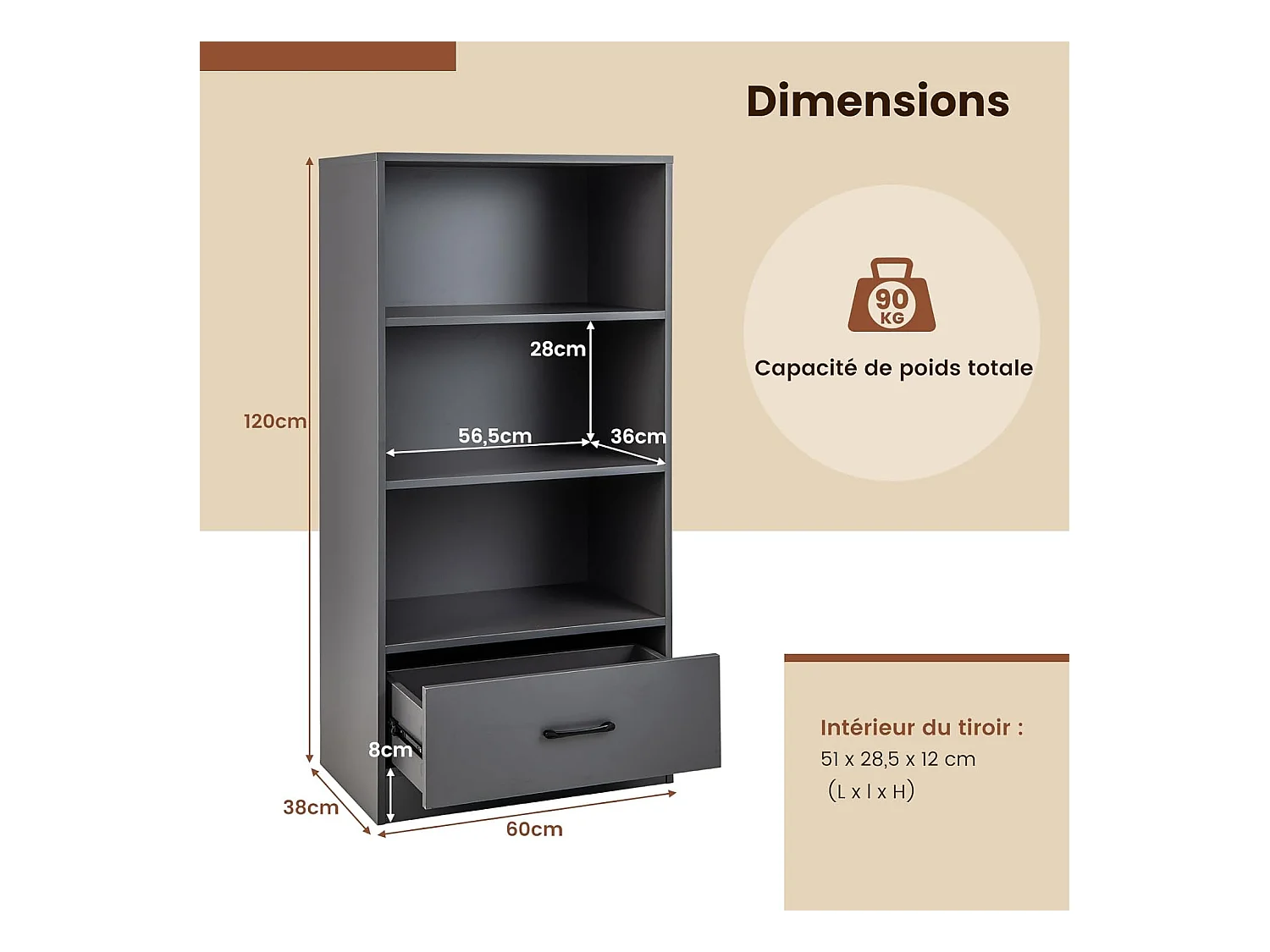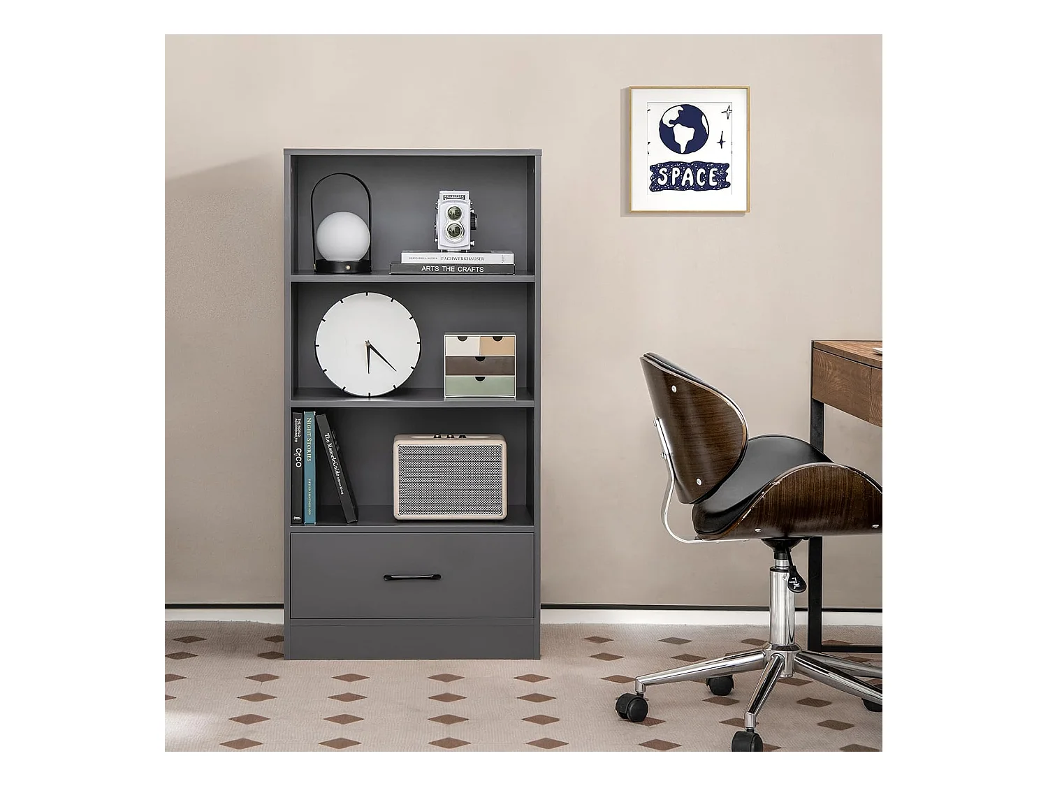 Bibliothèque étagère en bois à 4 niveaux avec grand tiroir (60 x 38 x 120 cm,gris)