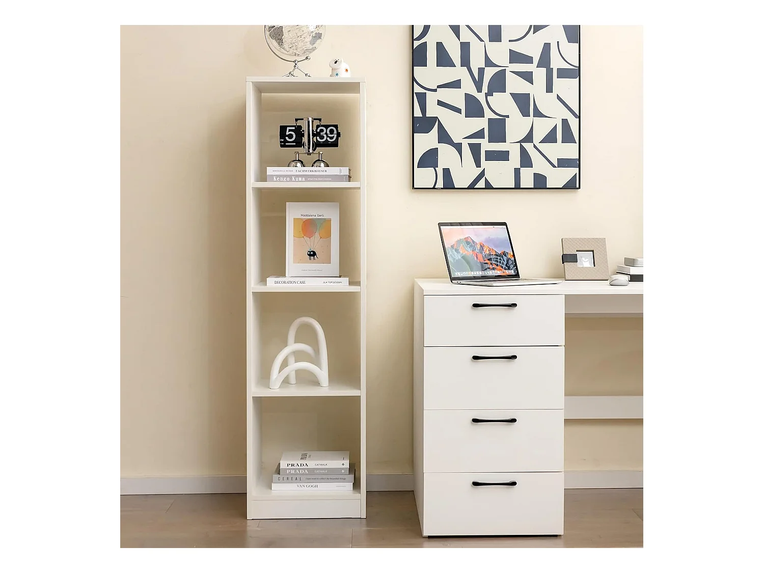 Bibliothèque Étagère style échelle de 4 niveaux et 1 tiroir –Blanc, FRG116-K-W