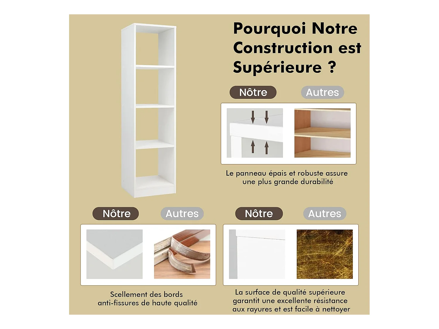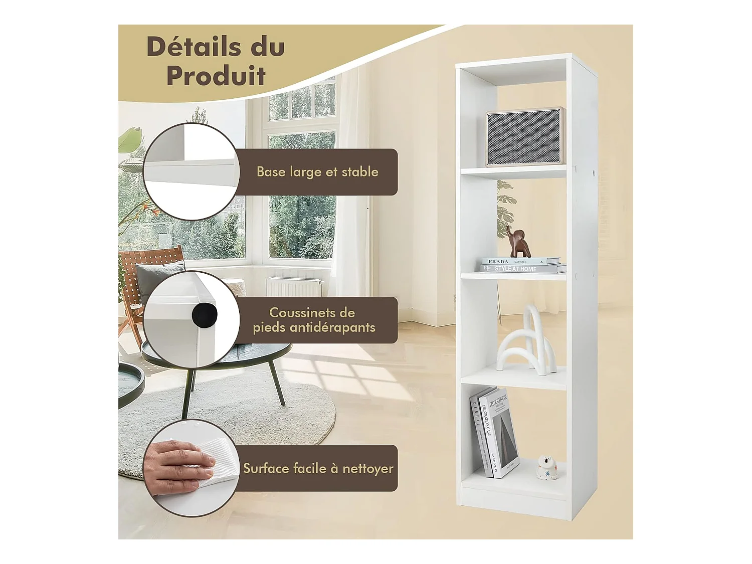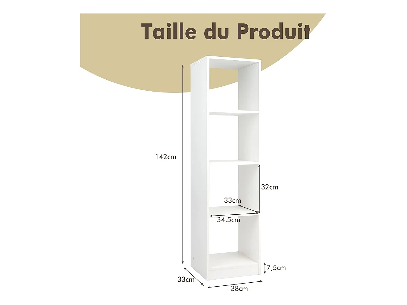 Bibliothèque Étagère Rangement à 5 Niveaux avec 4 Compartiments, Meuble Cube de Rangement en Bois pour Cuisine, Bureau, Salon, Salle d'Étude, 38 x 33 x 142 cm
