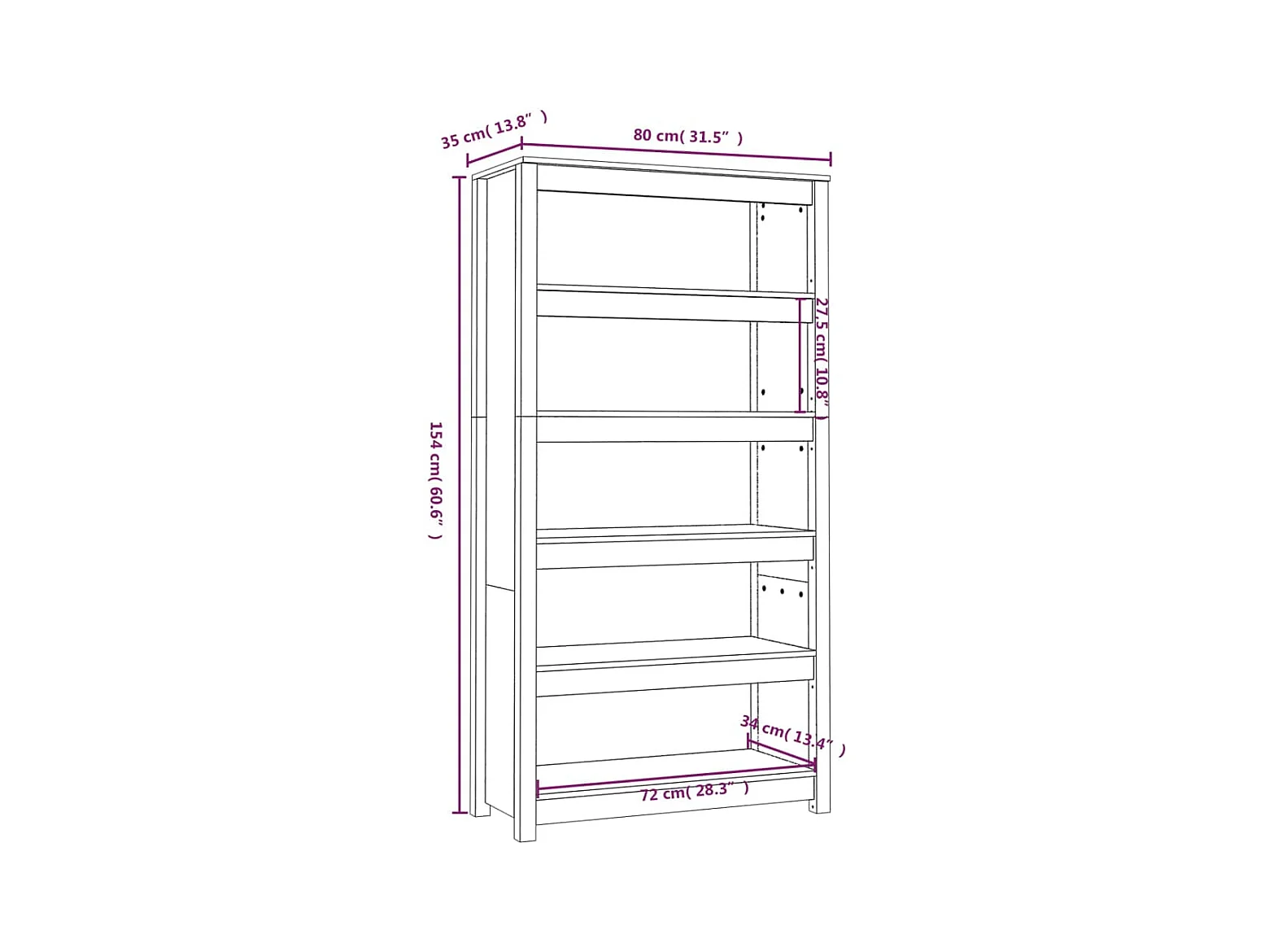 Bibliothèque Gris 80x35x154 cm Bois de pin massif