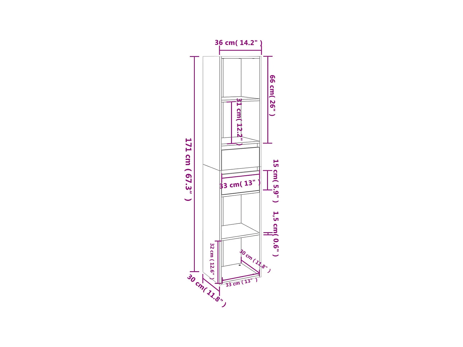 Bibliothèque Gris béton 36x30x171 cm Bois d'ingénierie