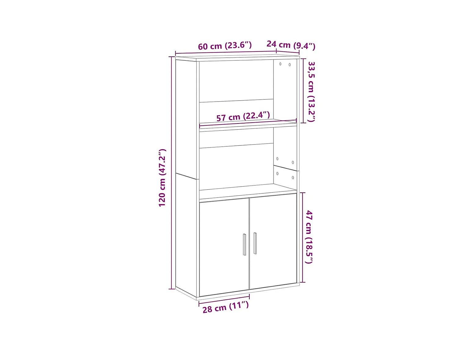 Bibliothèque sonoma gris 60x24x120 cm bois d'ingénierie