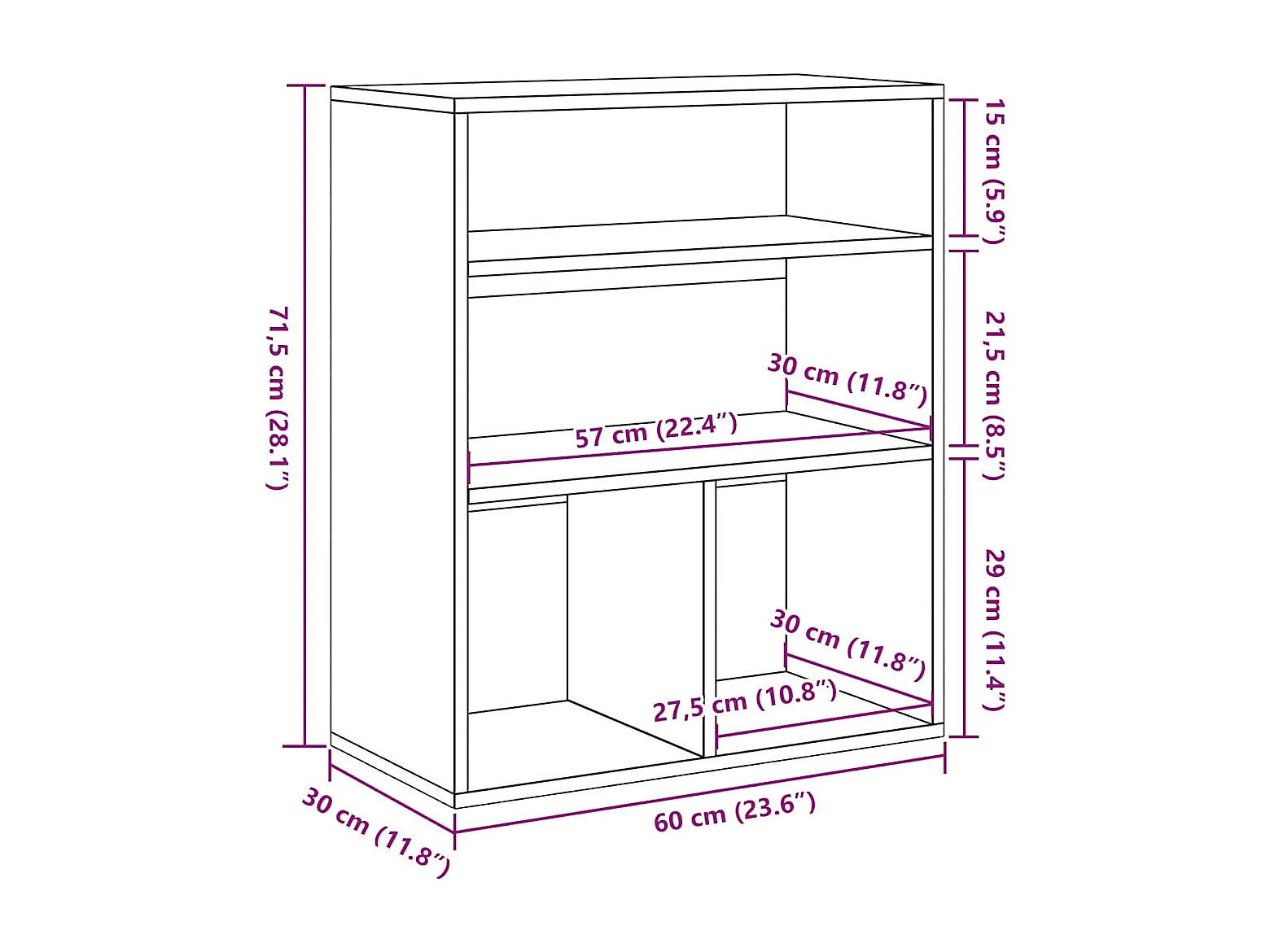 Bibliothèque 3 niveaux sonoma gris 60x30x60cm bois d'ingénierie