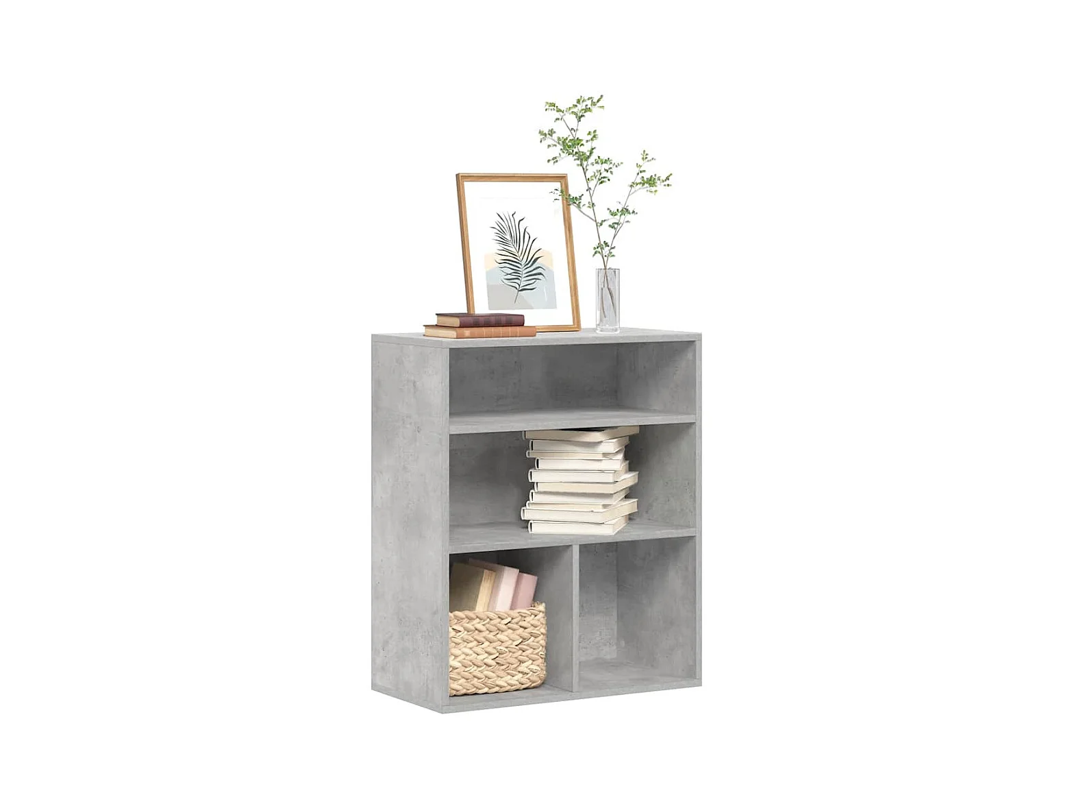 Bibliothèque à 3 niveaux gris béton 60x30x60 cm bois ingénierie
