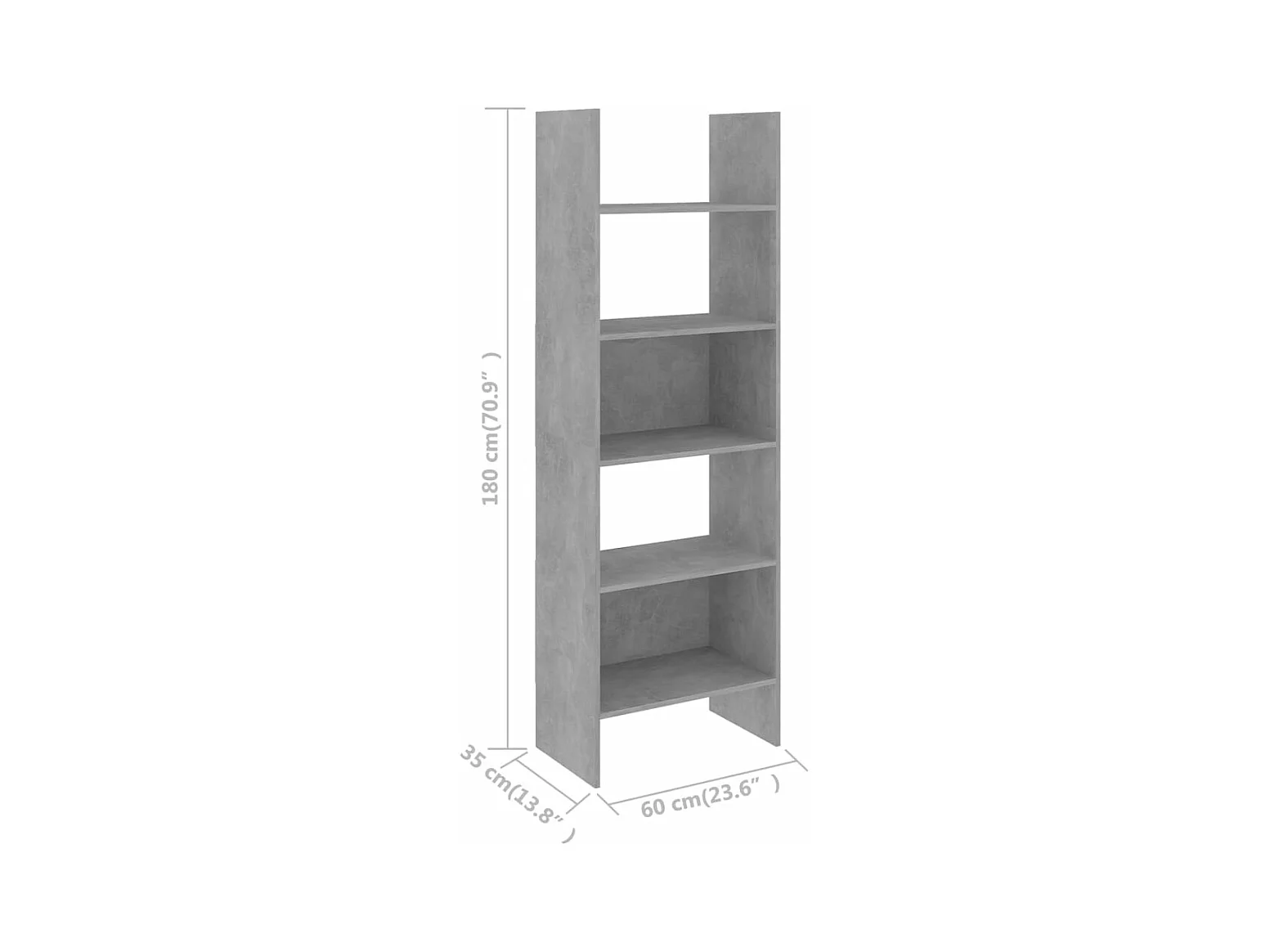 Bibliothèque Gris béton 60x35x180 cm Aggloméré