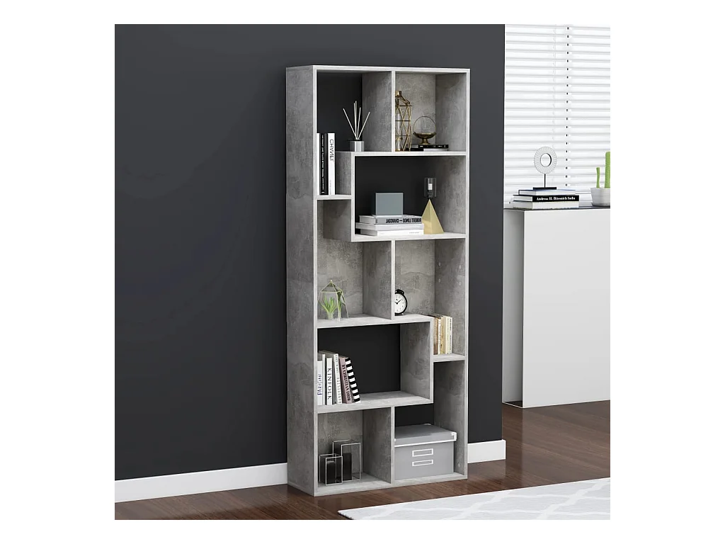 Bibliothèque Gris béton 67x24x161 cm Aggloméré OFR59637 BonneVie Meuble
